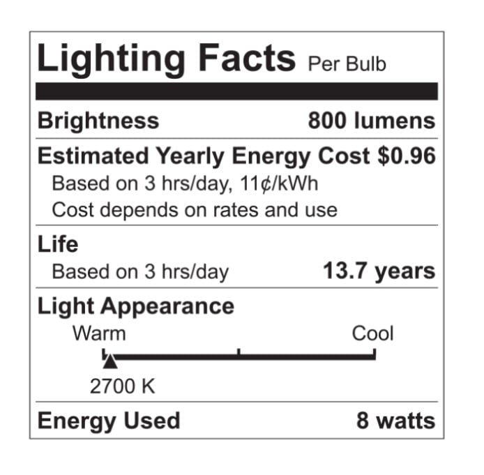 - 60-Watt replacement using only 8 Watts (800 lumens)