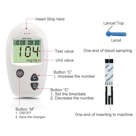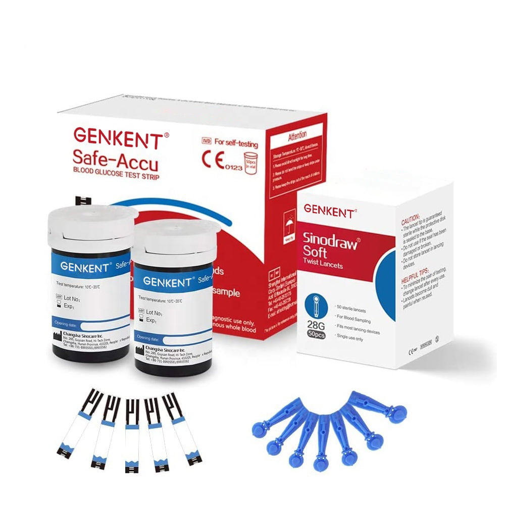 2.One Blood Glucose Meter + 50 pcs test strips + 50 pcs Lancets + one Lancing device