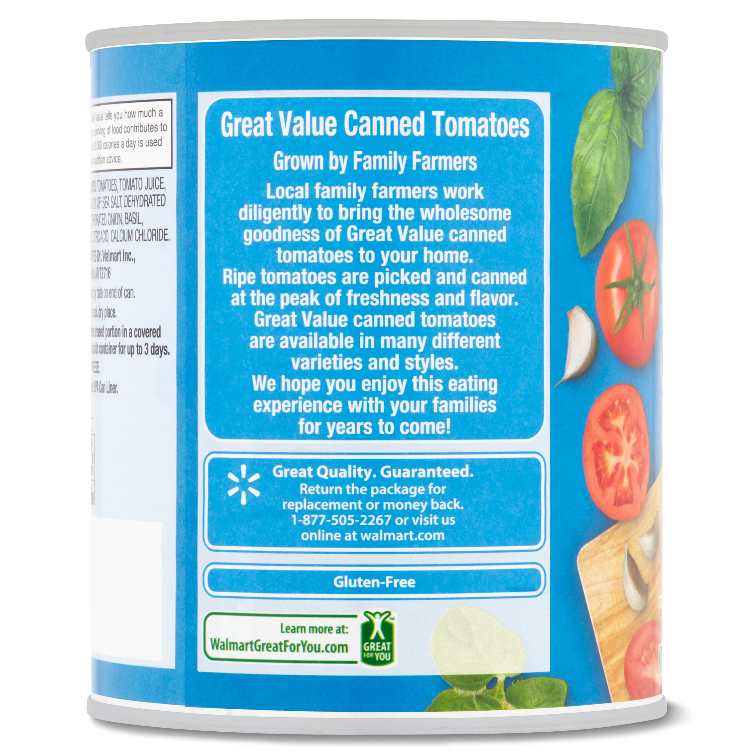 Great Value Italian-Style Petite Diced Tomatoes are vine-ripened tomatoes diced and seasoned with garlic and olive oil and packed in tomato juice. Italian flavor make this pantry staple ingredient great for your favorite family casseroles, soups, Italian dishes and more. Great Value offers a wide-range of USDA foods that are hand-selected to meet our high standards as well as yours.Fill your table with foods your family deserves without draining your budget.