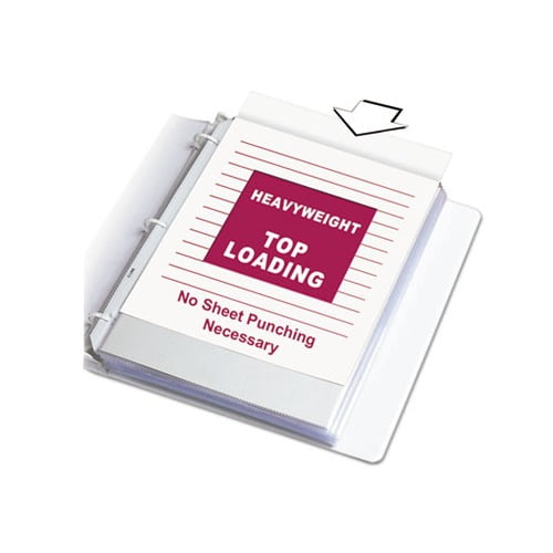 Sheet protectors are widely used as a tool to keep documents in their original condition. Once inserted into the holder, the documents instantly have a plastic, protective cover, which will help eliminate damage and tearing while they are being stored. This is especially important for high-use documents that are accessed on a regular basis. Document holders have strong, reinforced edges, which prevent tears. Top-loading sheet protectors are pre-punched to fit standard three-ring binders. This allows for documents to remain in their original state. The acid-free polypropylene material eliminates photocopy transfer. Sheet protectors are a durable storage option for important documents and reference materials. For 11" x 8 1/2" InsertsThree-hole punched for unpunched sheets. Load Orientation: Top Sheet Capacity: 2 Sheet Protector Type: Ring Binder Insert Size: 8.5 x 11.