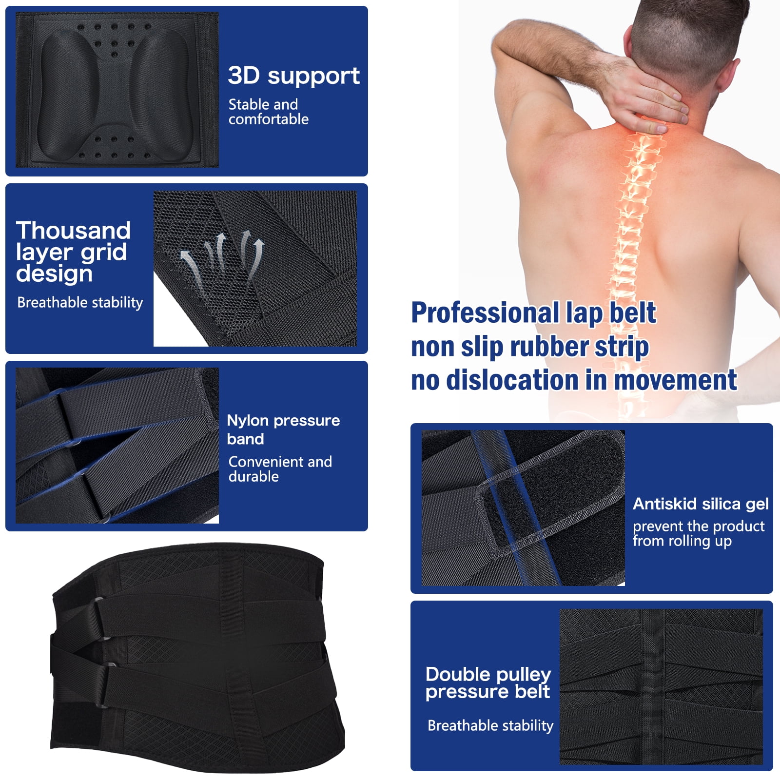 - 【CONSIDERATE DETAIL DESIGN】2 Silicone anti-skid bands are designed on the 2 sides of the waist,prevent the waist support belt from rolling up when sitting, bending or doing other activities,will not scratch your skin or damage your clothes.