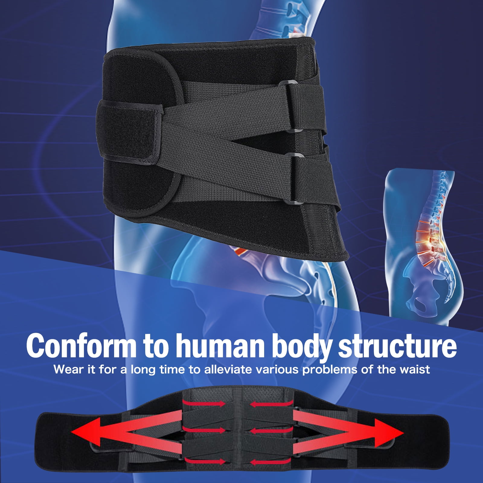 - 【PREVENT BACK INJURIES】Back support with 2 elastic straps are designed to add extra compression around lower back to prevent back injuries from weight lifting, long time standing or sitting, doing housework, working, etc. Relief waist muscles ache, disc herniation, sciatica, scoliosis etc when wearing the back belt.