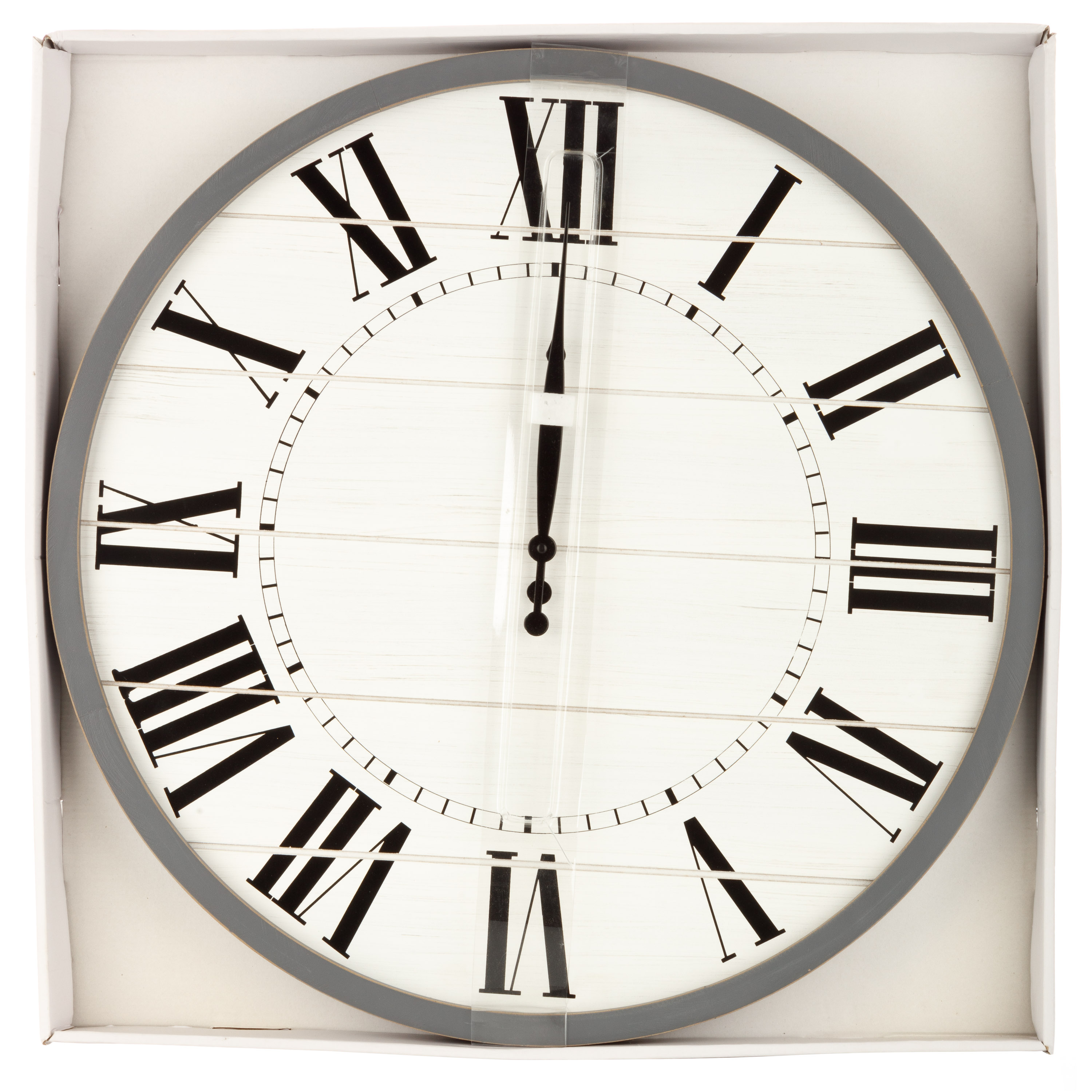 Home Décor Collection 24 Inch Rustic Distressed Gray and White Roman Numeral Wall Clock