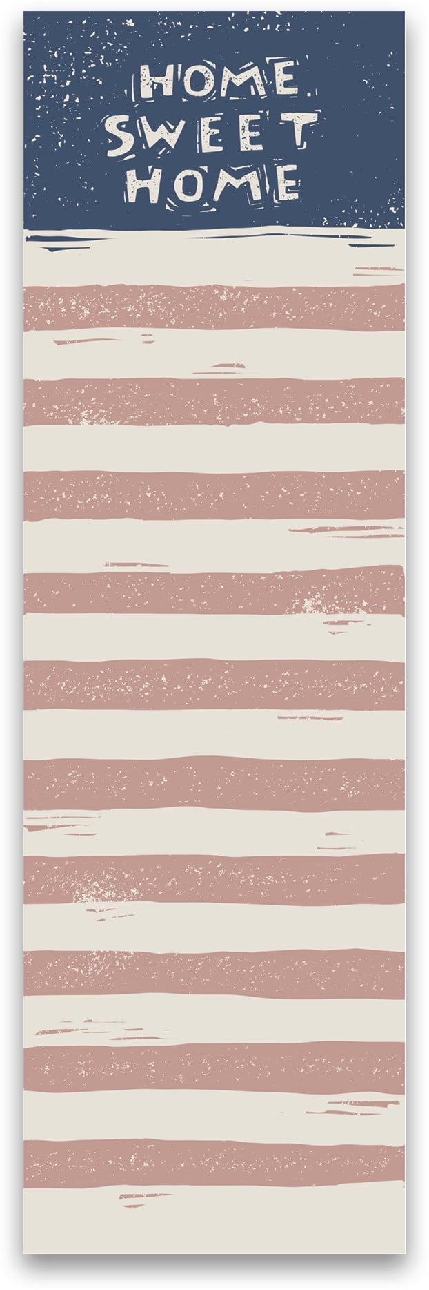 A paper list notepad created with intricate age-old block carving and printmaking techniques. Features a "Home Sweet Home" sentiment with American flag background design. Contains 60 pages and strong back magnet. Made in USA.