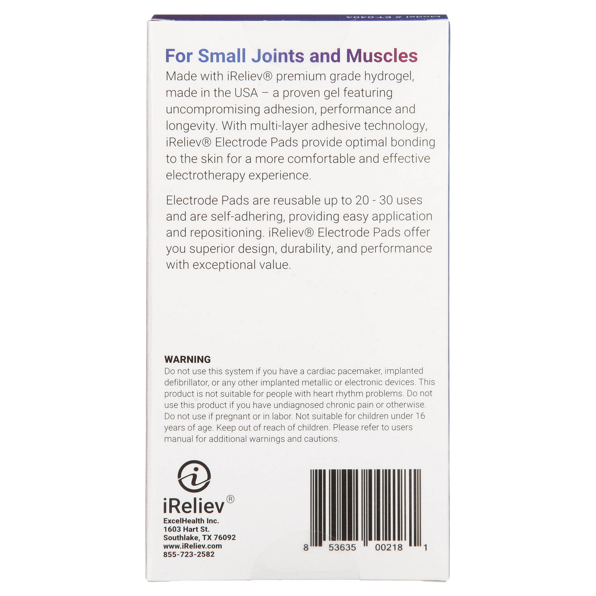 iReliev® Mini TENS Electrode Pads Refill Kit with butterfly snap-style series electrode pads feature patented structural composition and hydrogel properties that provide the ultimate in therapy comfort while conducting subtle electrical impulses that help to alleviate pain and encourage soft tissue healing. Uncompromising Adhesion; Performance & Longevity; A More Comfortable Electrotherapy Experience; Flexible Fabric Layer Contours Better to Your Body; Free From Natural Latex; Refill Kit Contains Quantity of 3 Snap-Style Pads – 2" x 3" Butterfly Shape