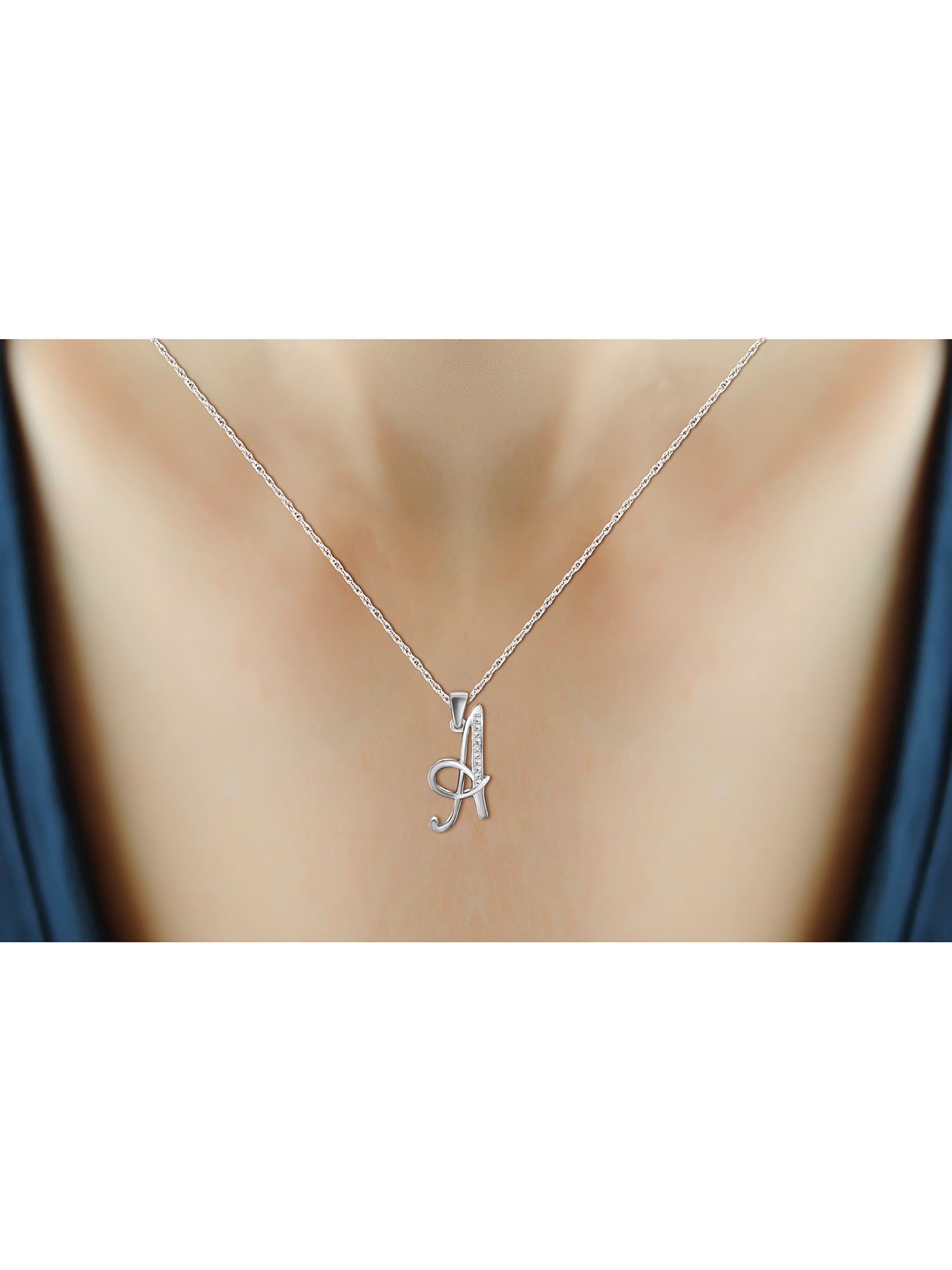 A Chic, Fashionable Way to Rock Your Initial The JewelersClub White diamond initial necklace helps you bling and shine. Ideal for wearing to every casual or formal event, it catches the eyes of everyone around you with the polish and shine of durable sterling Silver and the glisten of White diamonds. The 18” rope chain comes along with your initial pendant so you can rock a contemporary necklace anywhere you go. With craftsmanship like this, your new necklace boasts both a posh and luxurious touch. Why Love Your New JewelersClub Initial Letter Pendant Necklace? Our love for lustrous White diamonds meets excellent craftsmanship to create this design that celebrates you, every day. This monogram initial necklace is not only a fun accessory to wear but is also one that will never go out of style. Personalized jewelry is one of the most highly sought after designs in today’s market. This necklace will give you the feeling that it was designed especially for you. It is a thoughtful gift idea for all the lovely women in your life. Features: Polished in .925 Sterling Silver Chic, Cursive Font Style Includes an 18 inch Rope Chain