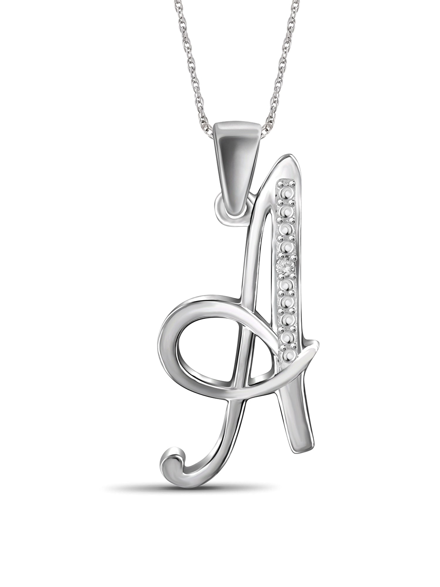 - Your new JewelersClub White diamond initial pendant necklace is a stunning piece of letter art. Carefully chosen White diamonds sparkle and glisten on your neck. Add to your jewelry collection and let your style take center stage with a new initial, diamond pendant.
