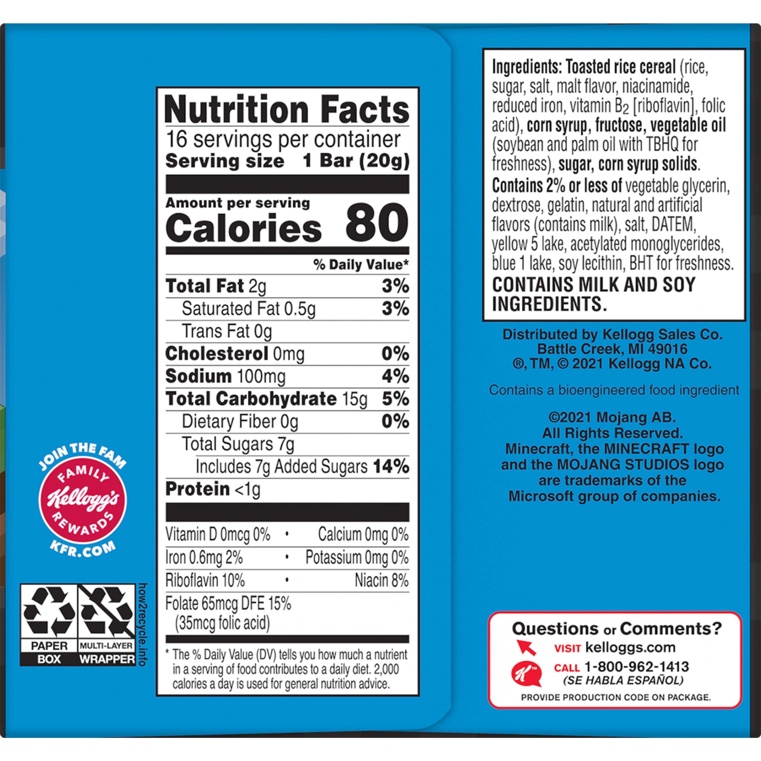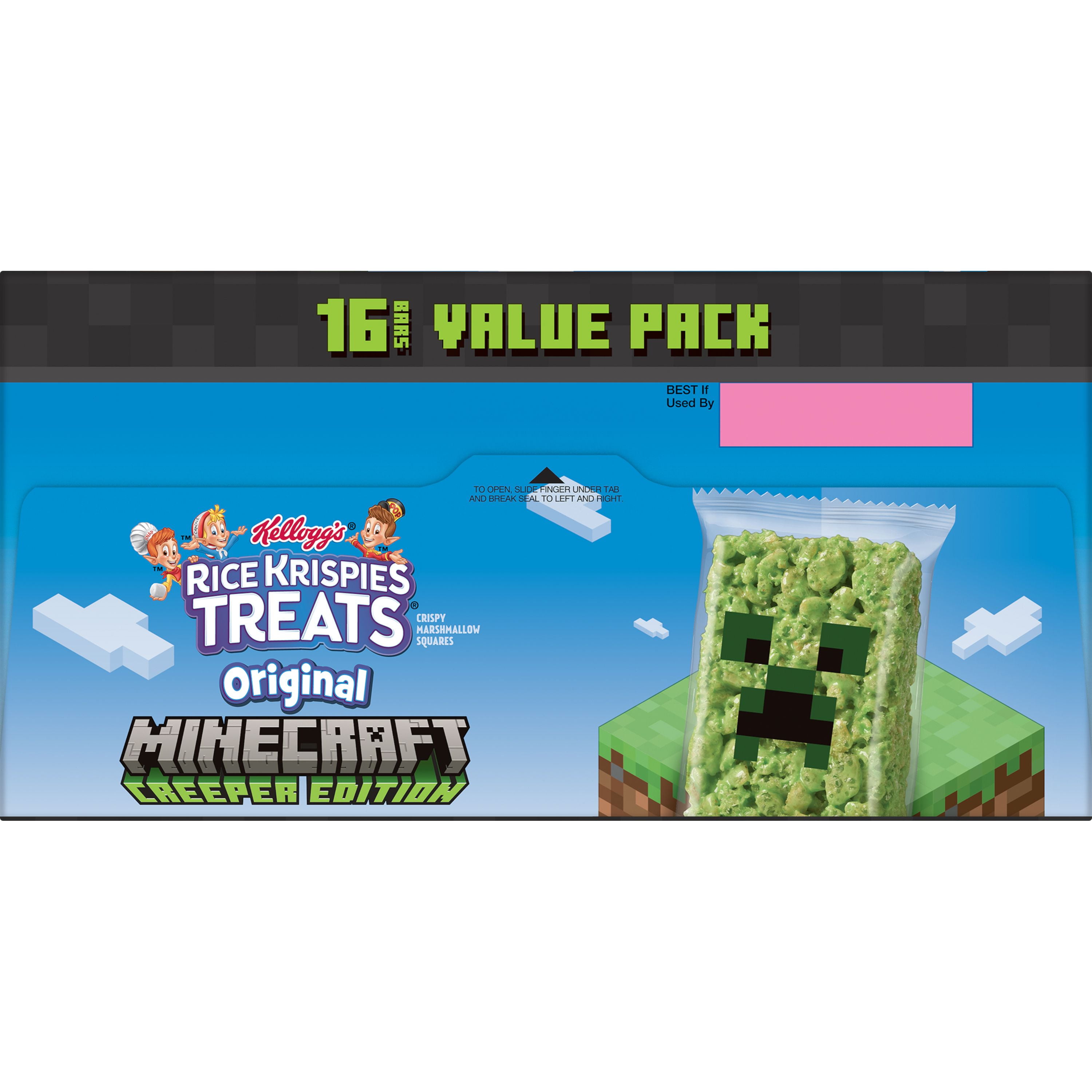 Minecraft is bringing the adventurous spirit of its popular game to snack time. Kellogg’s Rice Krispies Treats Minecraft Creeper Edition are an irresistible treat that’s sure to satisfy. Includes 1, 11.2-ounce box containing 16 Creeper green marshmallow squares that are made with puffed rice cereal and the taste of soft, gooey marshmallows for a delicious, ready-to-eat treat wherever you go. A classically delicious snack; each package contains one individually wrapped marshmallow bar that’s perfect for snacks at school, the office, lunchtime, or while gaming with friends. Satisfy your craving with the simple goodness and on-the-go convenience of Kellogg’s Rice Krispies Treats Minecraft Creeper Edition.