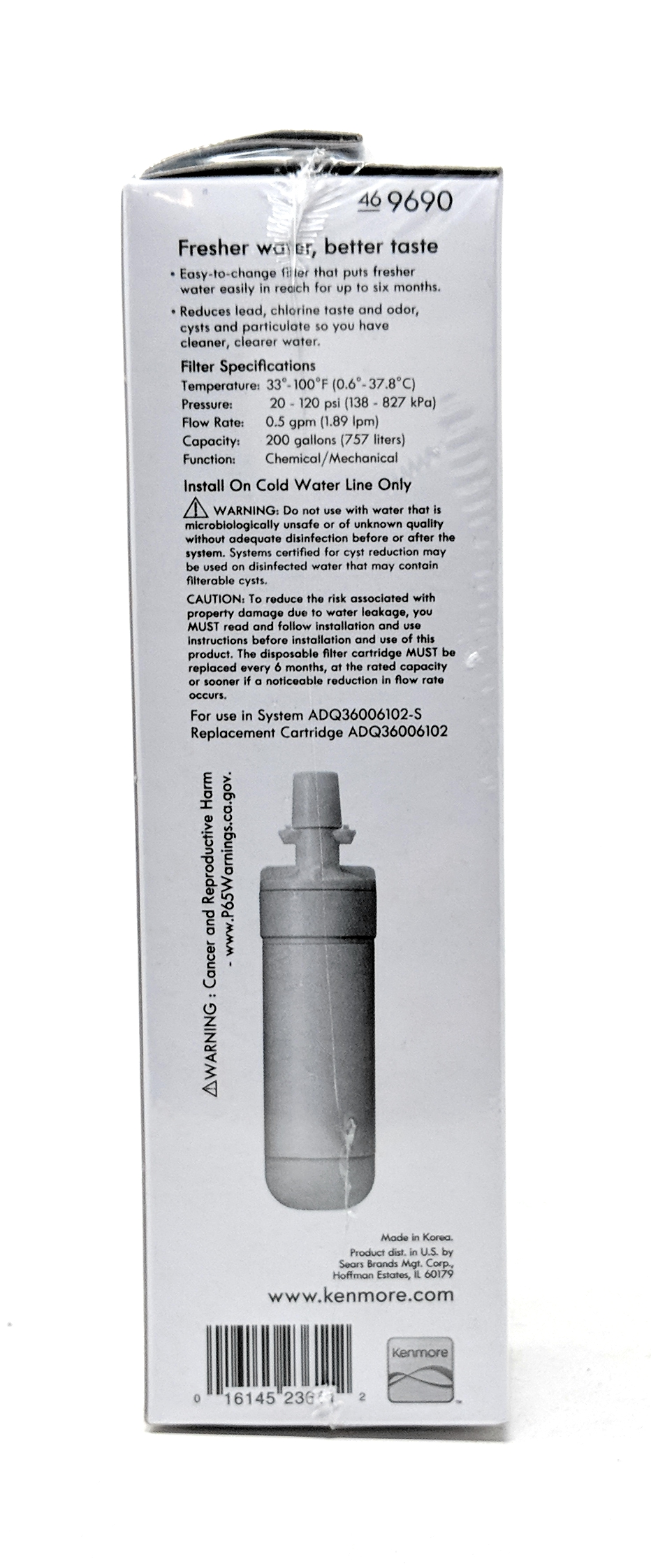 The Kenmore Clear! Kenmore-46-9690 is compatible with part numbers 9690, 469690, 46-9690 4609690000, 46-9690 and ADQ36006102. It fits refrigerator model number 72053. This filter is used to improve the taste and clarity of water used in your refrigerator. I has an activated granular carbon filter designed to improve taste and a cellulose filter rated to .52 microns for improvements in sediment reduction and filtering of impurities such as cysts and sediment. 2 Pack.
