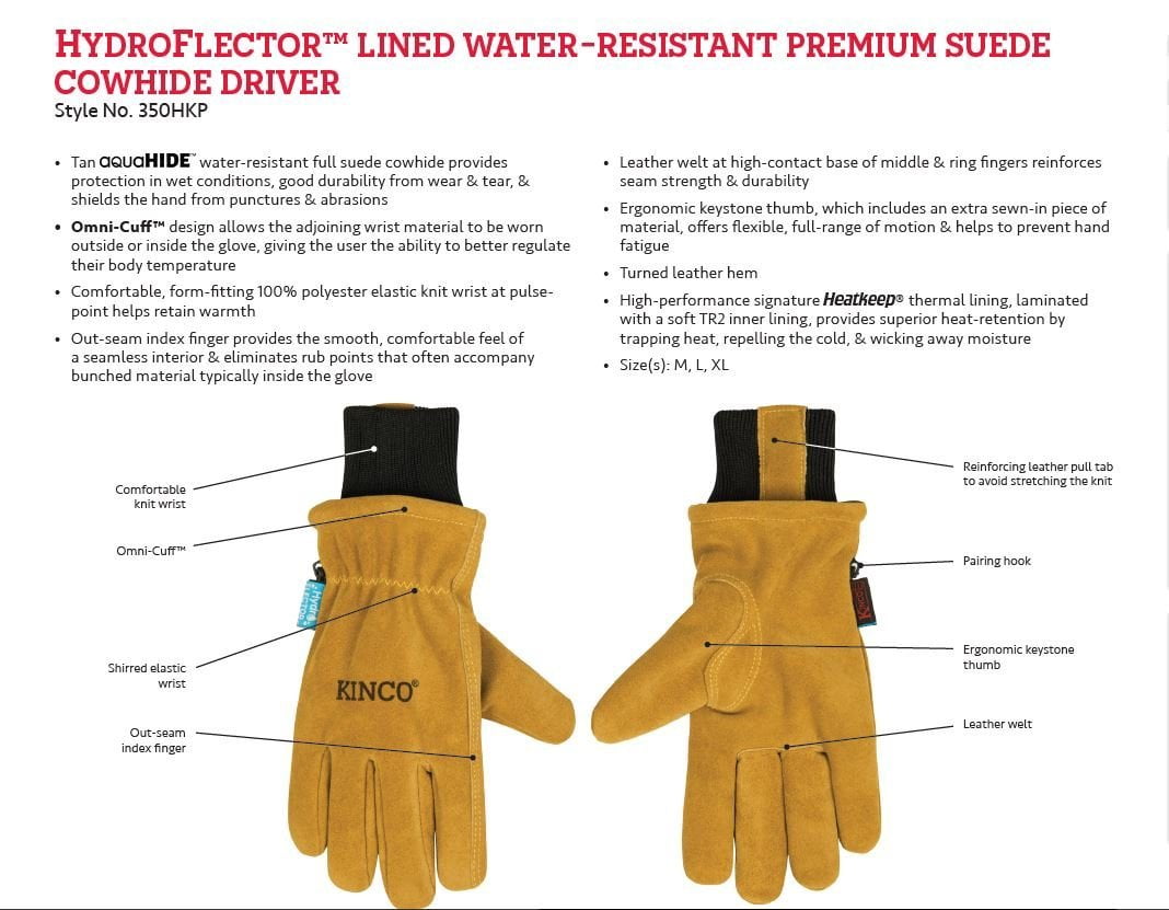 Brand New Design from the Best Glove Manufacturer – Kinco’s 350HKP is the outcome of Customer Input as to what Makes a Better Winter, Work Glove. This Glove is a result of Kinco Listening to its Customers as to what they Need in a Long-Lasting, Practical, Warm, Work Glove. NEW TO MARKET Fall-2017