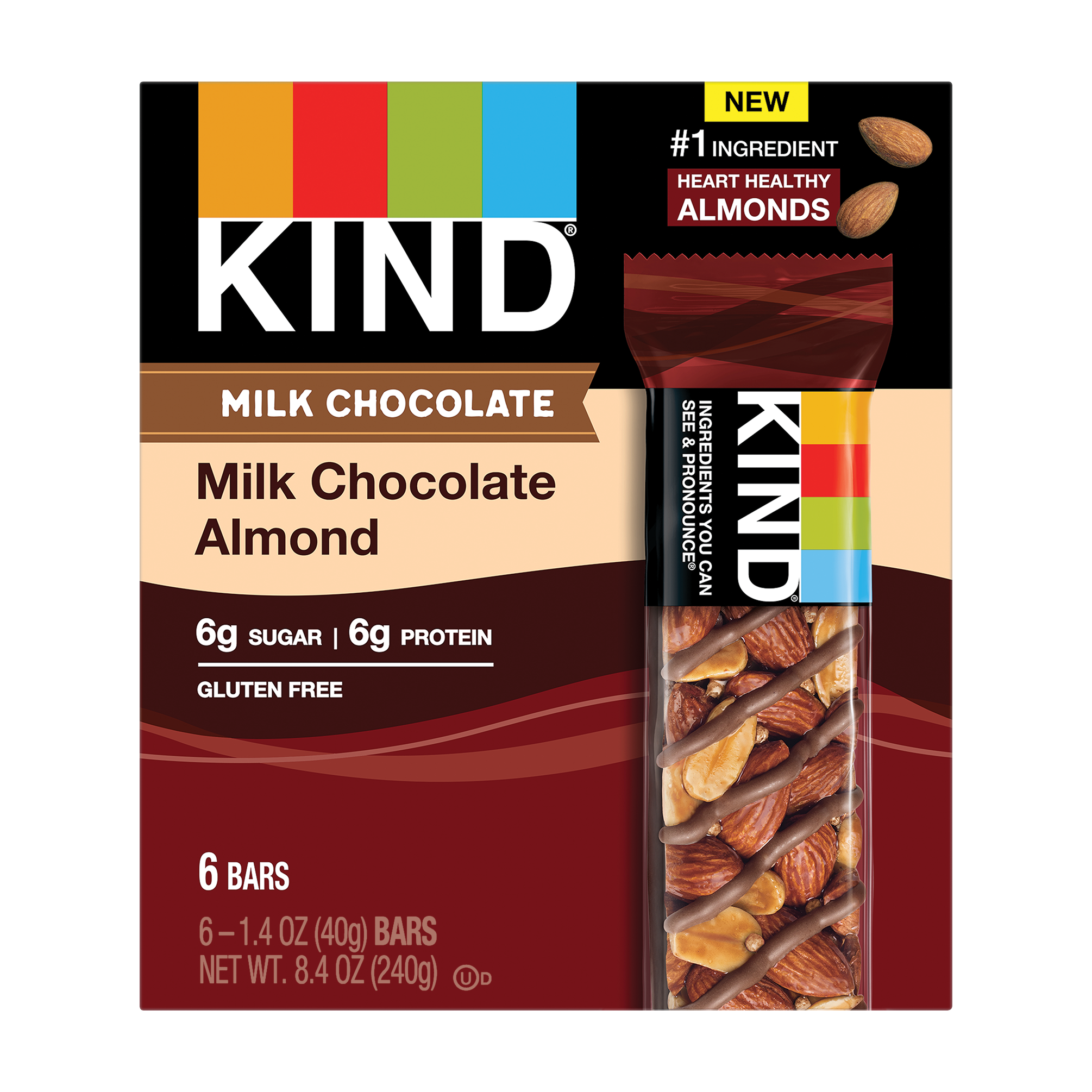 KIND Bars, Milk Chocolate Almond, Gluten Free – 1.4 oz, 6 Snack Bars