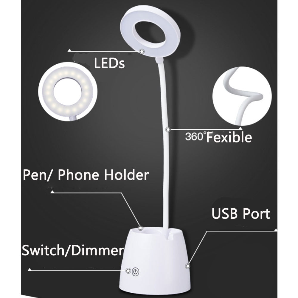 Desk Lamp LED USB Desktop Light With Pen Holder Flexible Touch Cordless Dimmable Memory Bed Read Table Study Light