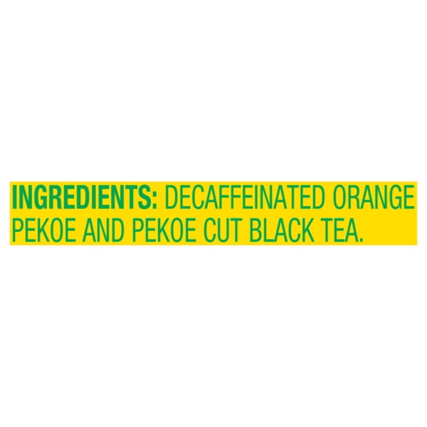 Crafted for a pure, bold tea flavor, Lipton’s Master Blenders have created our finest decaf black tea blend yet. That bold, smooth flavor that always invites another sip? It comes from tea leaves that are picked right when they’re the freshest, then perfectly pressed to release the most nuanced taste and aroma for the only tea experience worthy of the Lipton name. No matter when you drink it, skip the caffeine jitters but not the taste with tea that’s decaffeinated using a method that preserves most of the flavonoids and all that pure, clean, classic tea flavor. Blended to be equally delicious iced or hot, Lipton Decaffeinated Black Tea is made from real tea leaves for authentic tea flavor. Try it hot to greet the new day, or sip it iced and refreshing after your next workout or at a backyard get together with the people you love most. Love your heart with the help of Lipton Decaffeinated Black Tea, since drinking unsweetened black tea can help support a healthy heart as part of a healthy, balanced diet*. As you sip, feel good knowing that Lipton Decaffeinated Black Tea is Rainforest Alliance Certified to support our commitment to sustainable farm practices and farmers across the globe. To bring you the freshest-tasting tea imaginable, we package all 50 Lipton decaffeinated black tea bags in freshness trays. For your next cup of tea, brew up something incredible and savor the premium flavor of fresh-brewed Lipton Decaffeinated Black Tea. We believe every cup of tea can brighten your day. *Unsweetened Decaffeinated Lipton Black Tea contains about 90mg of flavonoids per serving, no calories, no added sugars and is 99.5% water.