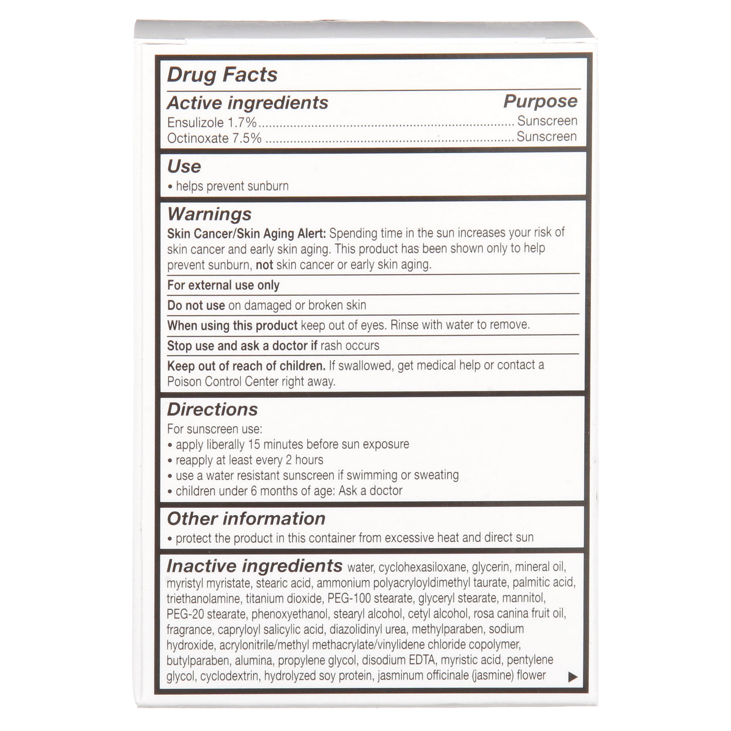 - Anti-age spot day cream with SPF 15 helps hydrate skin.