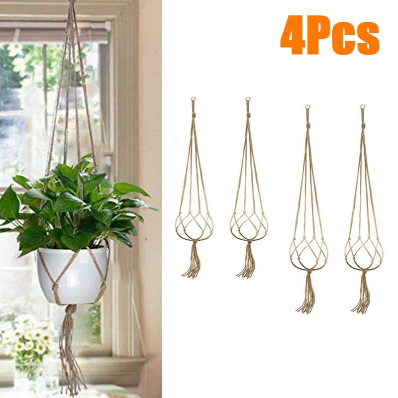 Macrame Plant Hanger 4PCS Hanging Planter Basket Flower Jute Rope Pot Holder for Indoor Courtyard Garden Decor