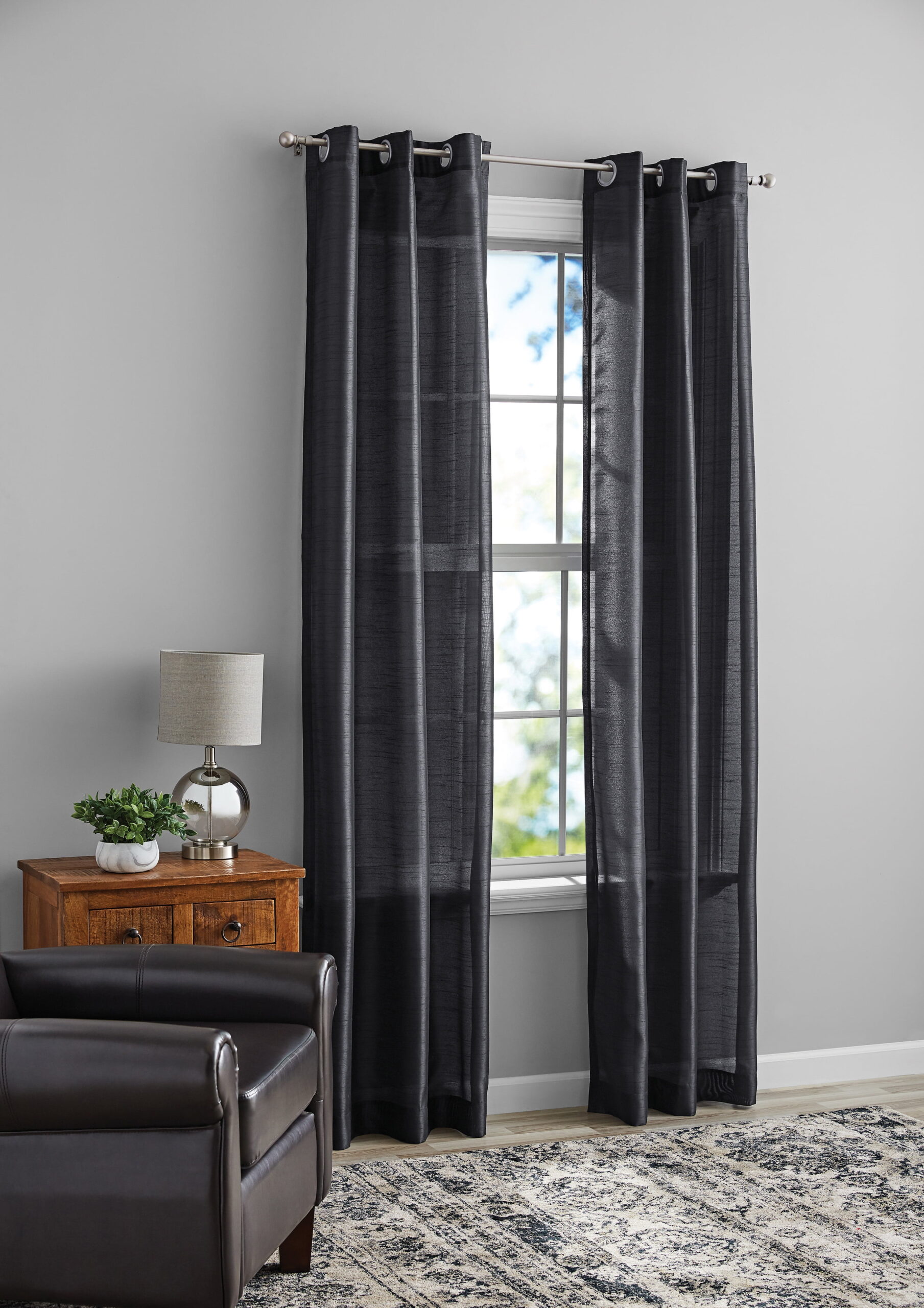Mainstays Faux Silk Textured Solid Color Light Filtering Grommet Curtain Panel, Set of 2, Black, 37 x 84