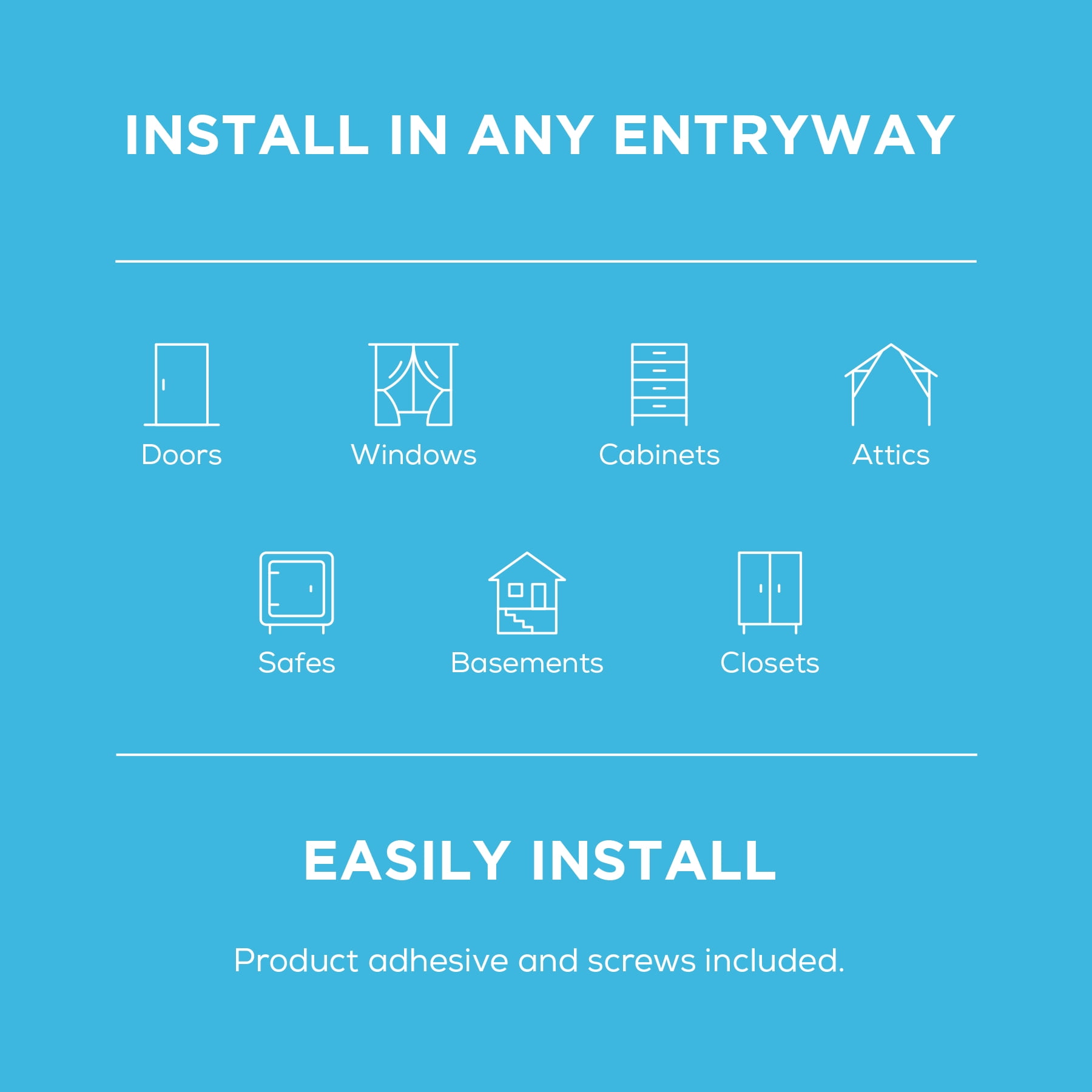 - Includes,2 sets Smart Door Sensors, 8X screws 8X Wall Anchors, 3M Adhesive, User Manual