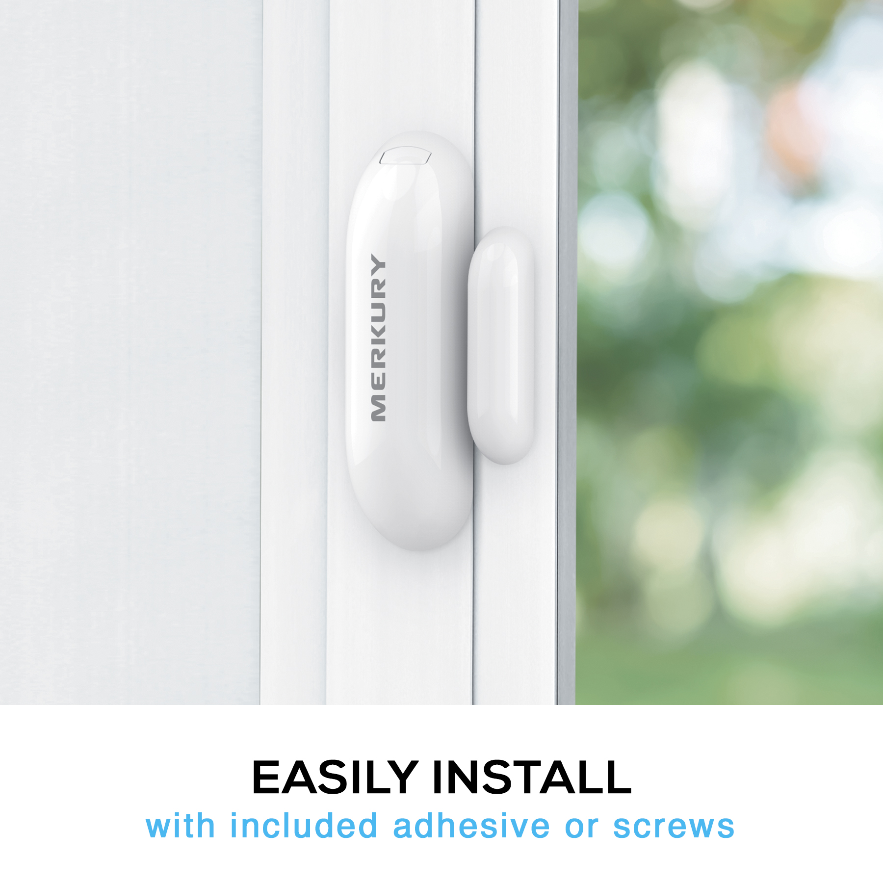 The Merkury Innovations Door & Window Sensors protect your doors, windows, safes, closets, and more. Get real-time alerts at the exact moment a sensor is opened. Using your home Wi-Fi, you can set up automated actions with other smart home products like having the lights turn on when you open the door. The reliable 3M adhesive sticks reliably to most surfaces. Screws and wall anchors are included for an additional support. No hub required and it works with your already existing 2.4 GHz Wi-Fi network.