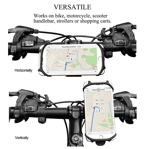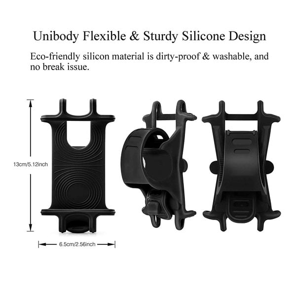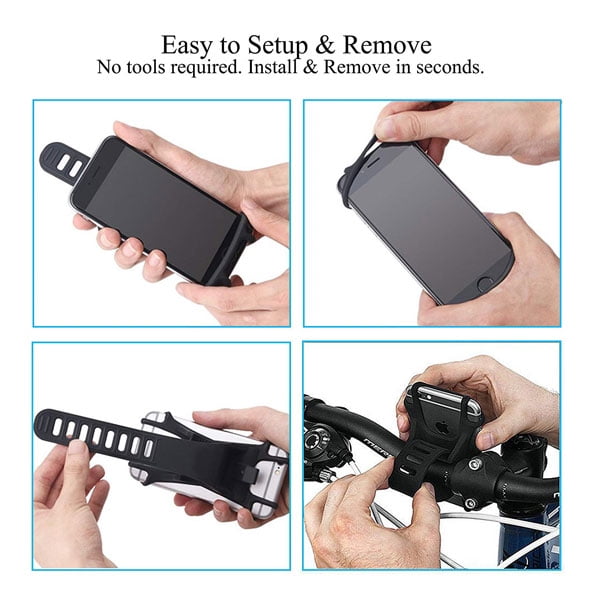 Universal Compatible Design For Small And Large Bike Handlebars. Perfect Fits All Smart Phones With Screen Size From 4.0-6.5. Made With Super Strong Silicone Dirt-resistance And Washable And The Soft Silicone Will Never Scratch Or Damage Your Phone. Non-slip Silicone Can Absorb All Shocks Grips Your Devices Firmly Make Your Devices Stay Safe And Secure On The Bike Or Baby Stroller. Easy To Use Just Loop Around The Mount And Insert The Tab Into The Hole That Holds Onto The Handlebar The Tightest And There Are 8 Adjustment Loops.
