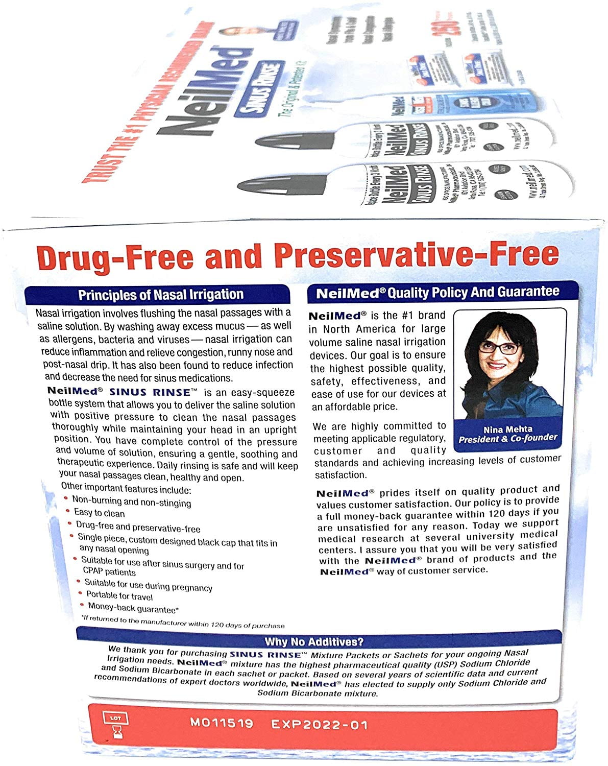 NeilMed Sinus rinse is an easy squeeze bottle system that allows you to deliver the saline with positive pressure to clean The nasal passages thoroughly, while maintaining your head in a very comfortable position. You have complete control of the pressure and volume, ensuring a gentle, soothing and therapeutic experience.Allergy & Sinus NeilMed Sinus rinse kit – 250 Premixed packetsNeilMed Sinus Rinse – 2 Bottles – 250 Premixed Packets