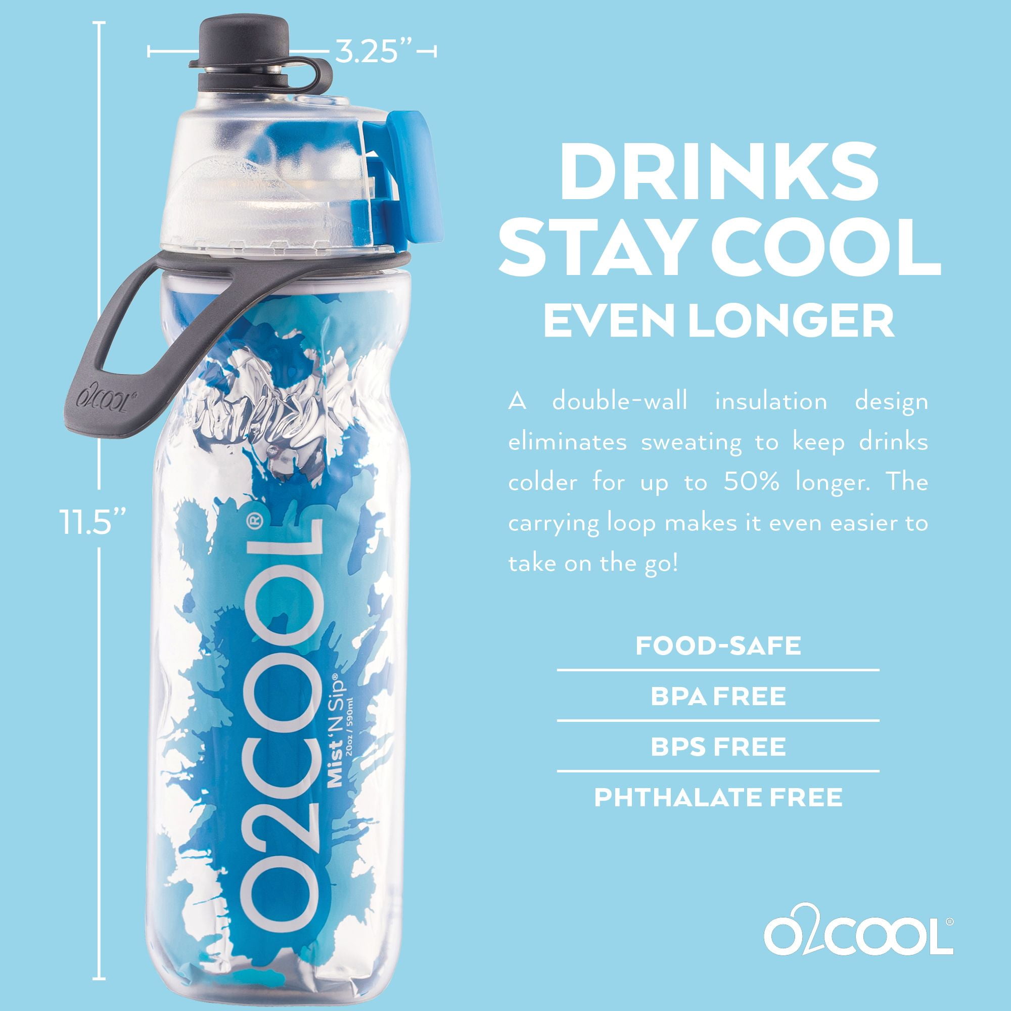 Staying hydrated is made easy with the Mist ‘N Sip Locking Lid Water Bottle from O2COOL. The blue portable bottle is flexible, easy to sip from and even sprays a fine mist to cool you down. Sporting a leakproof lid and built-in handle, this water bottle is convenient and easy to take with you on any of your adventures.