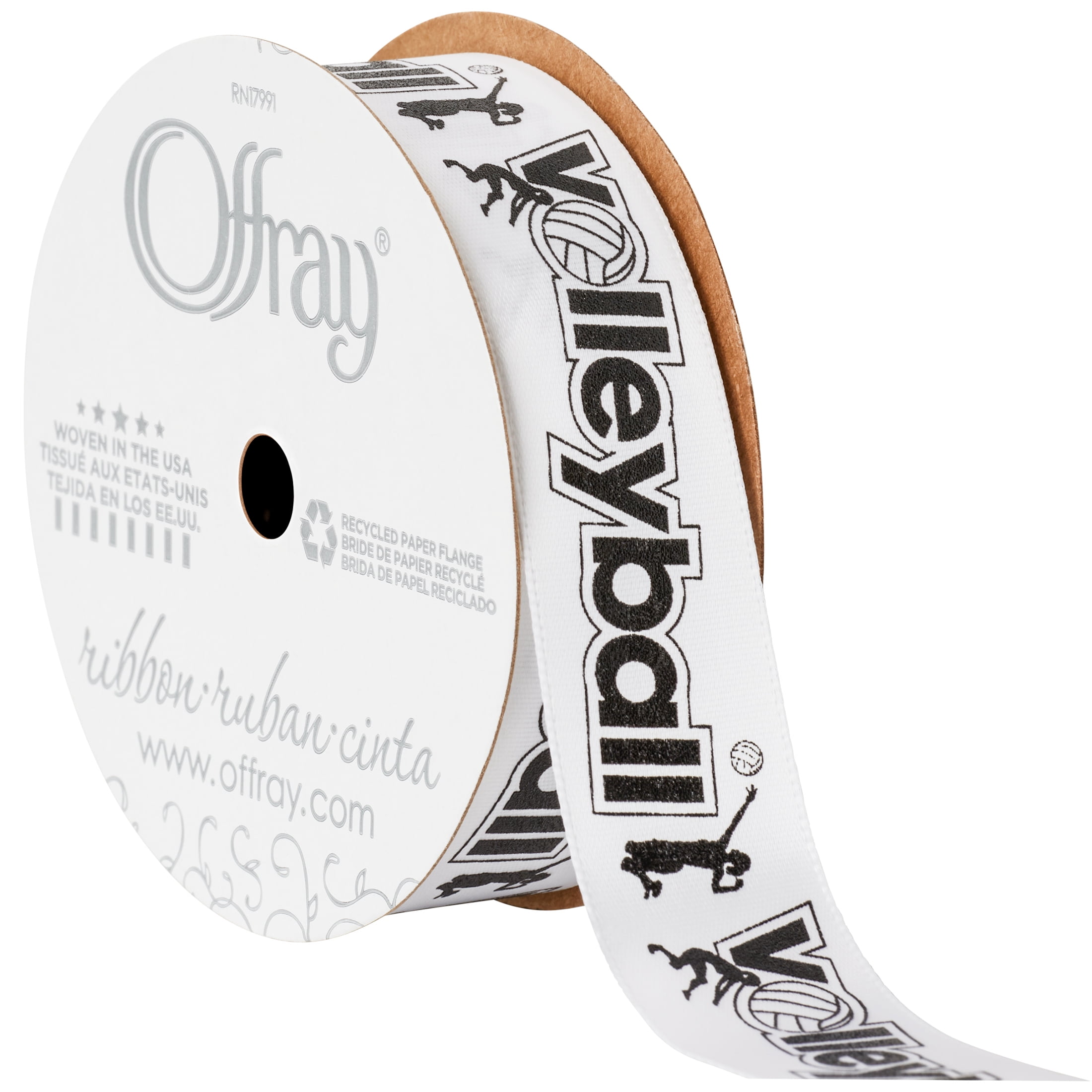 Offray Ribbon, Black White 7/8 inch Volleyball Satin Ribbon, 9 feet