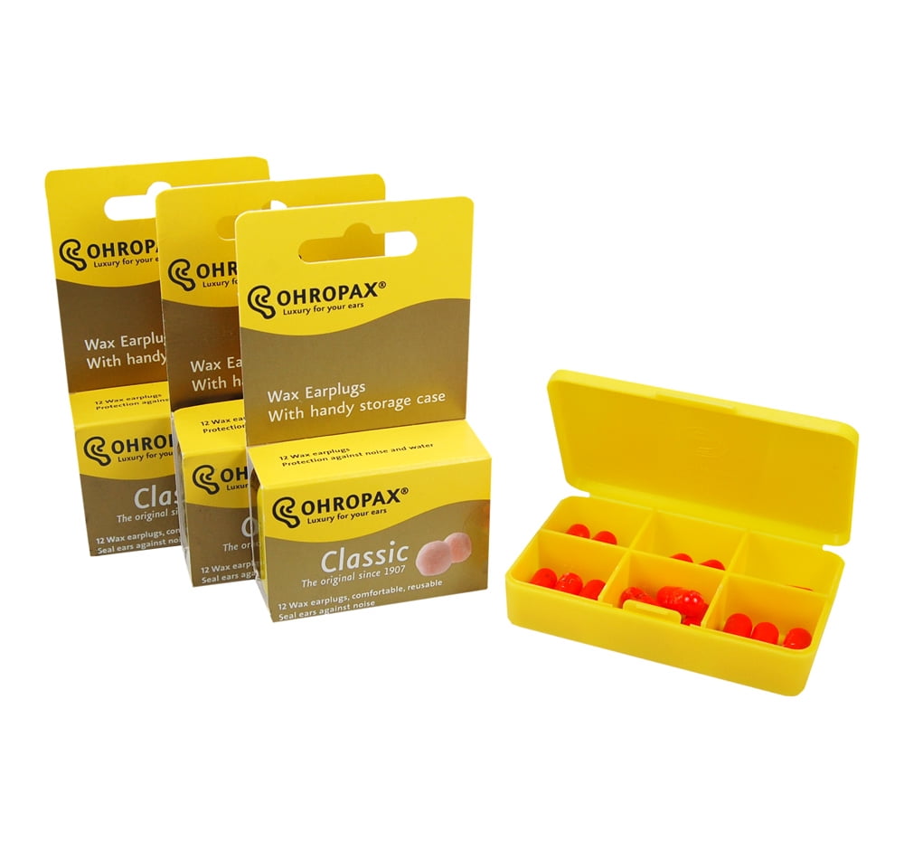 Ohropax earplugs are made from a soft wax compound covered with cotton for maximum comfort and durability. They provide a comfortable fit into the ear canal while creating an efficient seal against noise and water entry.