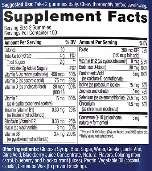 OLLY Men’s Multivitamin Gummy, Blackberry Flavor (200 Count)