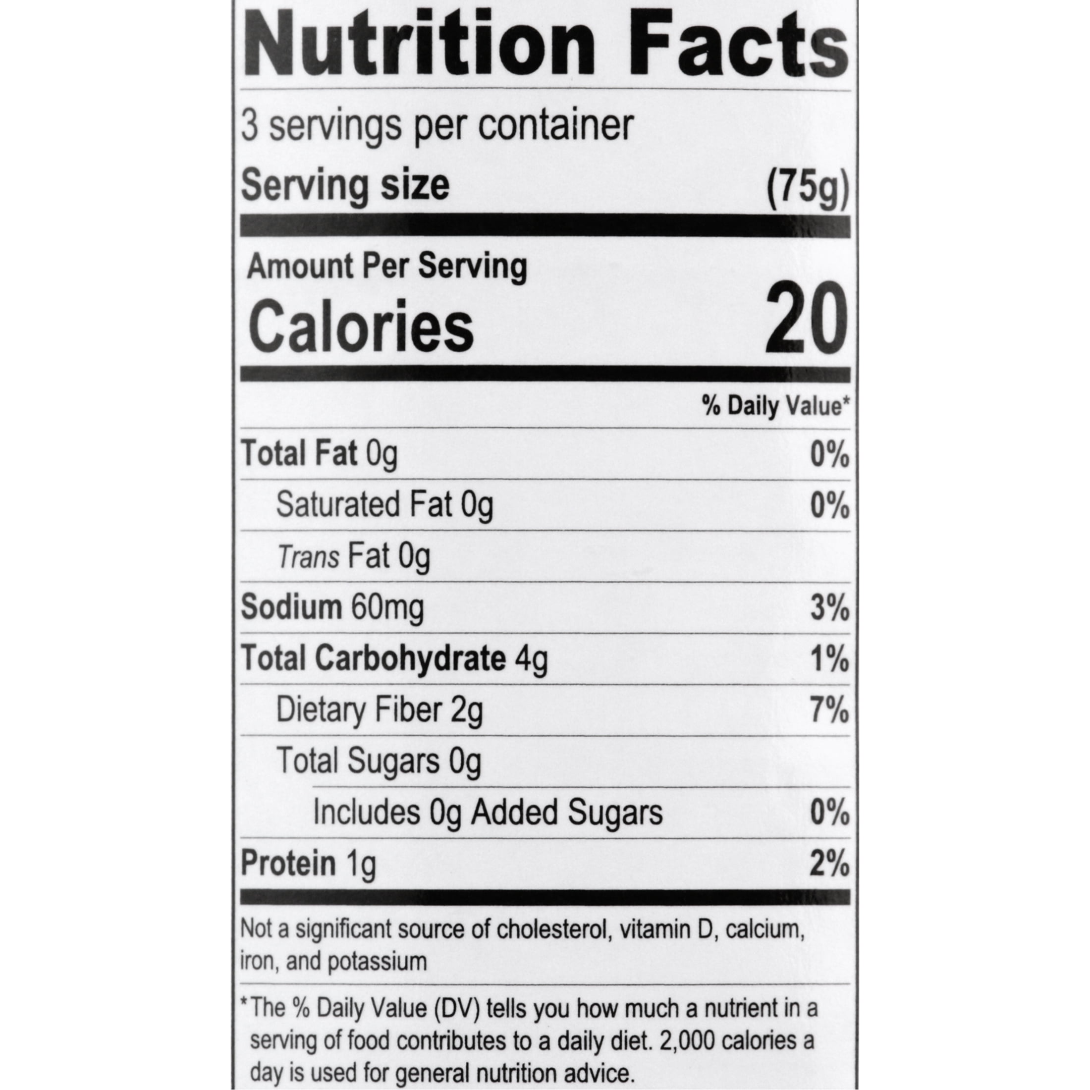- 20 calories per serving