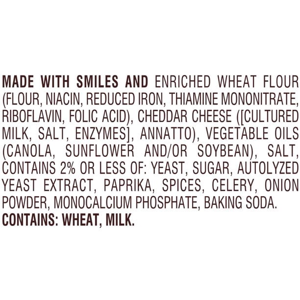 BAKED WITH REAL CHEESE: The Snack that Smiles Back: with Goldfish crackers, the smiles come naturally .Always made with 100% real cheddar cheese and no artificial flavors or preservatives