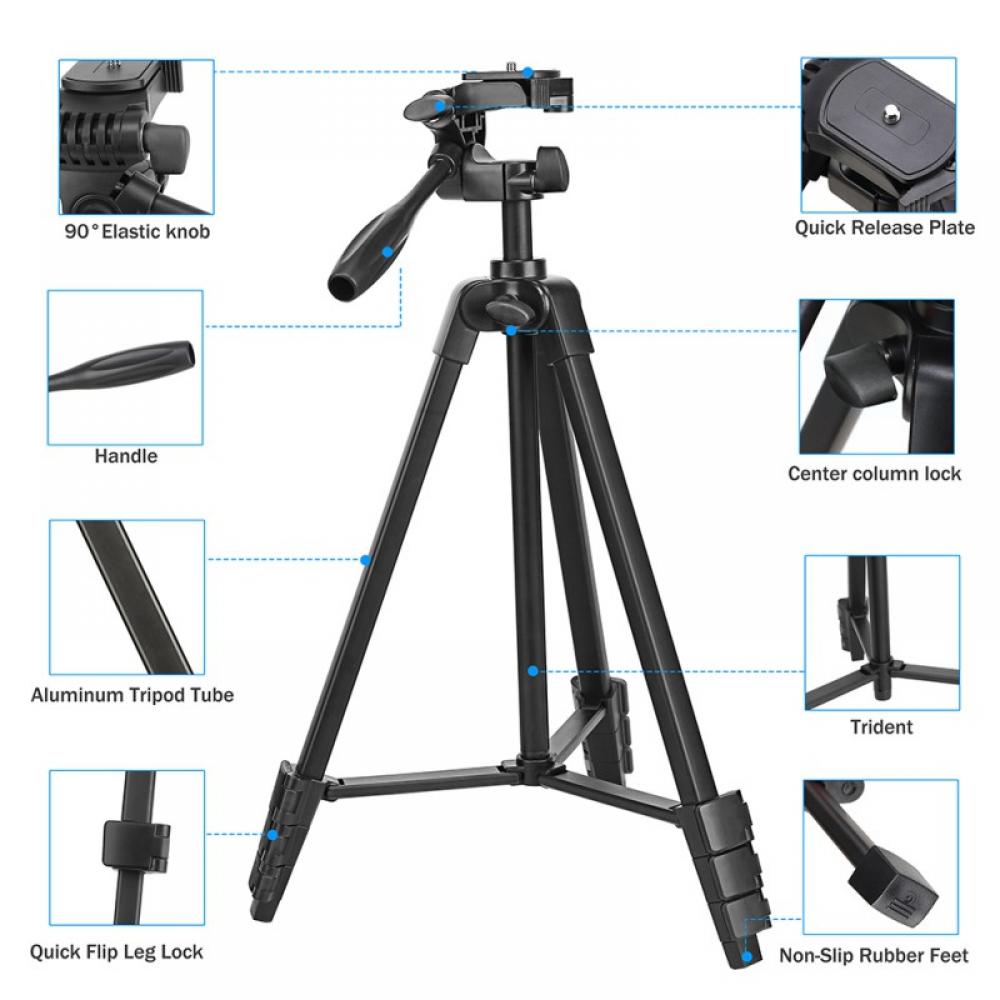 - Material: Made of highly durable aluminum alloy and eco-friendly ABS plastic, the tripod provides reliable user experience