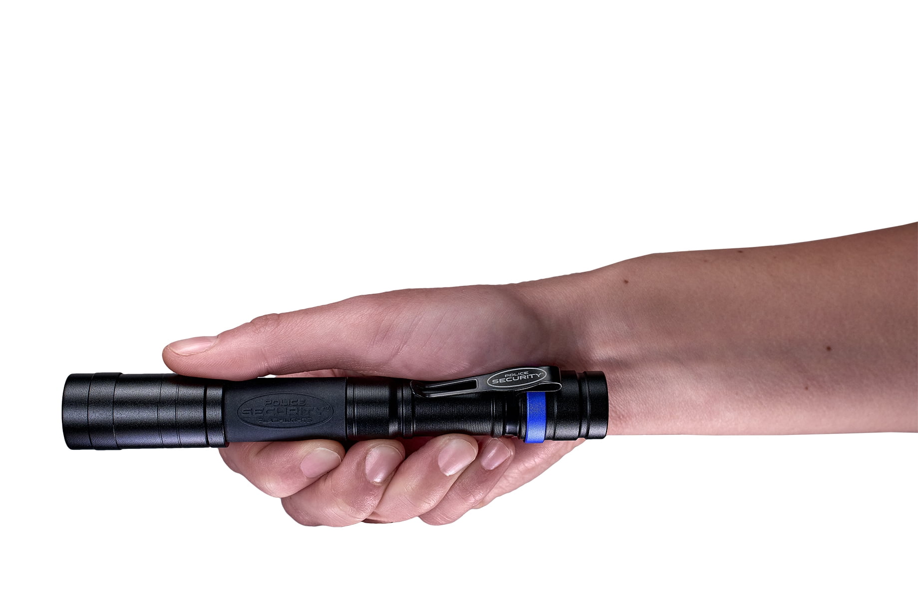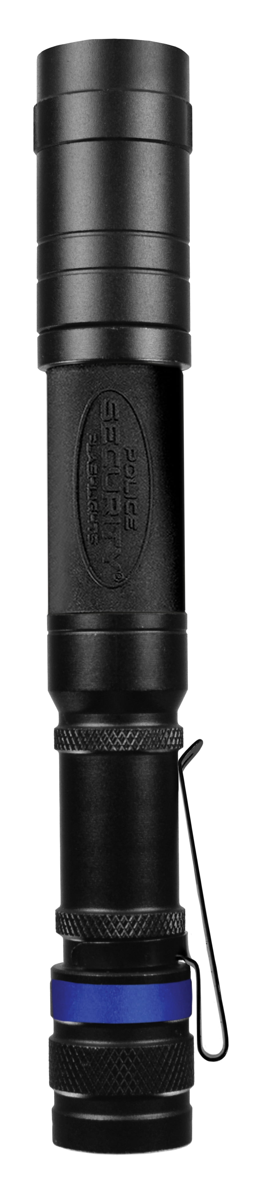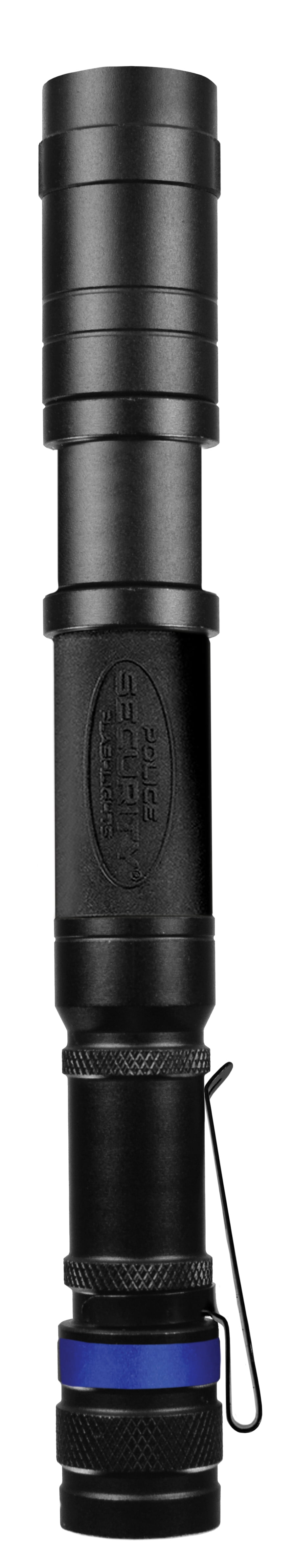 Police Security’s ultra-bright sleuth 2.0 300 lumens led flashlight meets everyday lighting needs. Shining 300 lumens with a beam distance of 130 meters makes this flashlight ideal for those unexpected situations when all you need is a bright light. Allows movement between spot and flood beams. With multiple power settings, high, low, and flash, the sleuth 2.0 led flashlight is versatile and ideal for just about any situation or environment. Built with durability in mind and backed by police. The sleuth 2.0 is water-resistant and is powered by 2 AA Police Security alkaline batteries.