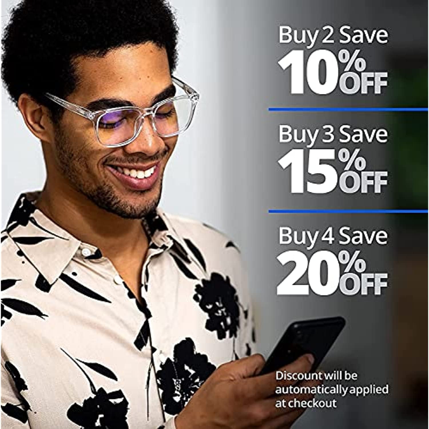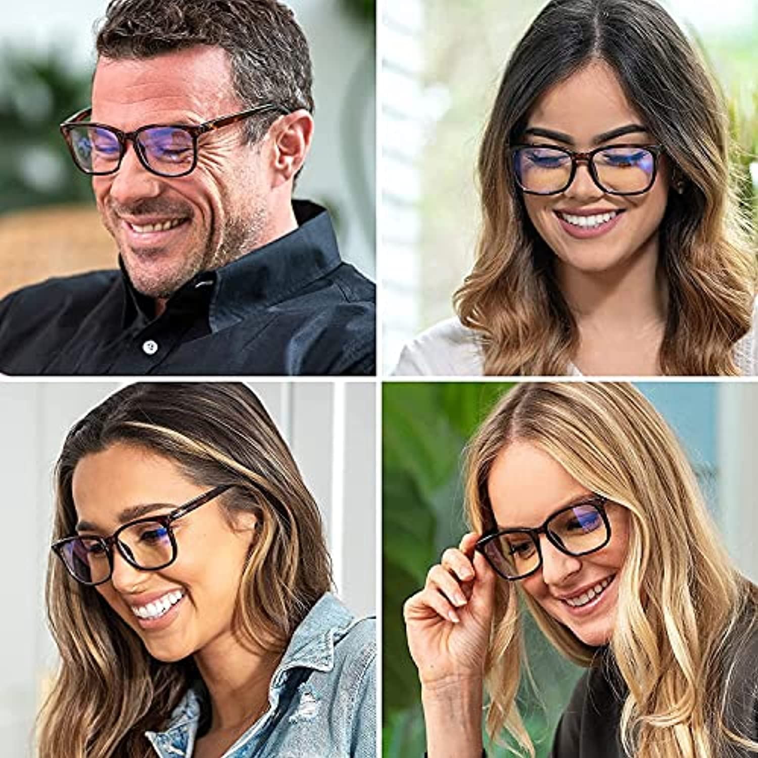 - BLUE LIGHT BLOCKING LENSES. Whether its your computer at work, tv at home, or even your phone, most of us spend the majority of the day looking at screens. This can create eye strain resulting in sore eyes and headaches by the end of the day. Protect your eyes from the harsh blue light of our daily devices.