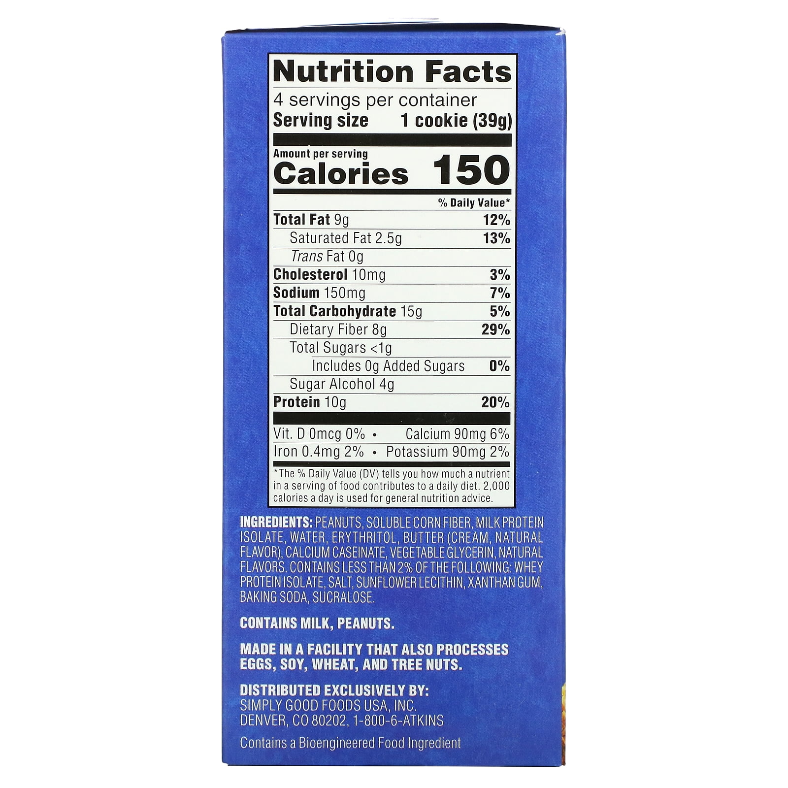 Atkins, Snack, Protein Cookies, Peanut Butter, 4 Cookies, 1.38 oz Pack of 2