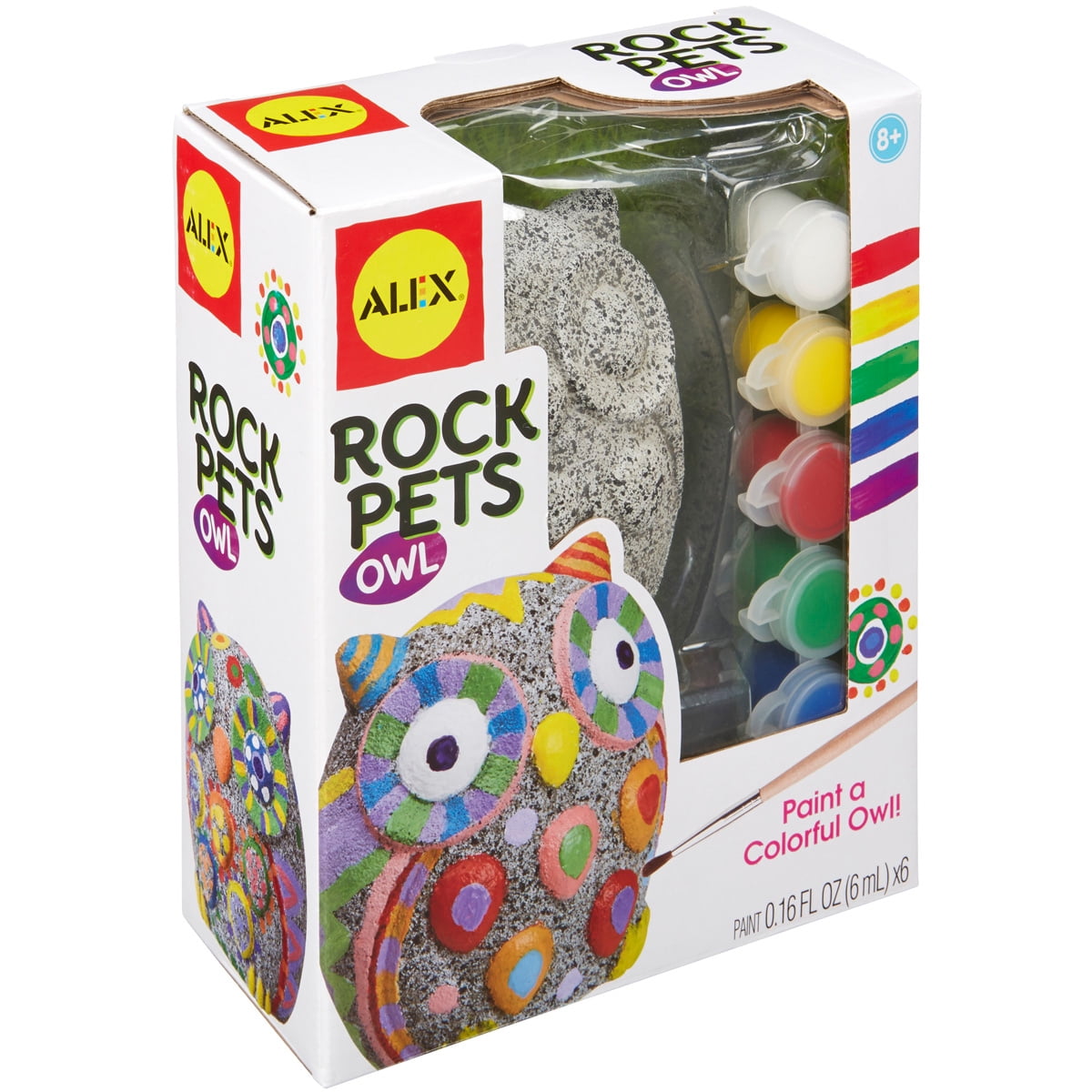 ALEX Craft Rock Pets Owl lets you paint and personalize your own night owl. Transform a pretend rock into a work of art in no time. Weatherproof paints allow your masterpiece to be displayed anywhere indoors and outdoors. Choose your favorite color combinations or make a gift for a friend or relative. Rock Pets totally rock! Recommended for children 8 years of age and older.