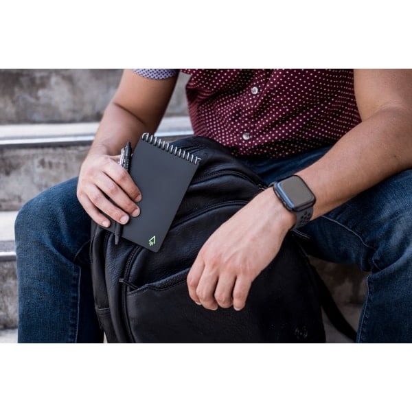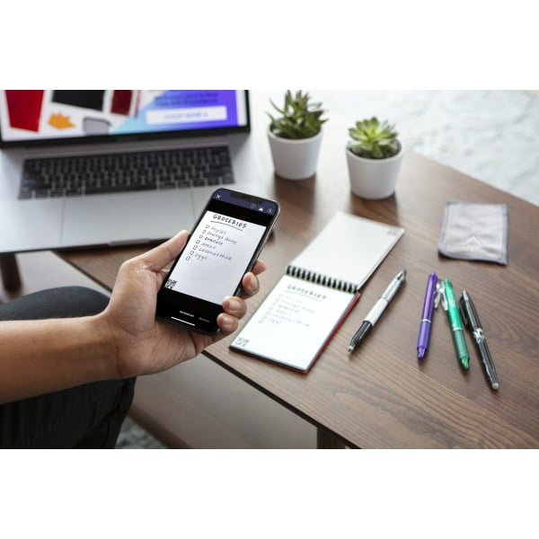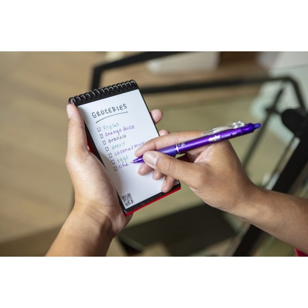The Rocketbook Mini Smart Reusable Notepad provides the freedom and versatility of a traditional pen and paper notepad experience, while instantly blasting your notes and ideas into the cloud using your smartphone for endless use. Although it feels like a traditional notepad, the Mini is endlessly reusable. When you write using the Pilot FriXion pen, your notes sticks to the Rocketbook pages like regular paper and with a drop of water the notepad erases like magic. We designed the Mini for those who want an endlessly reusable smart notepad to last for years, if not a lifetime. The Mini has pages made with synthetic materials that provide an extremely smooth writing experience. Blast your handwritten notes with this digital notepad to popular cloud services like Google Drive, Dropbox, Evernote, box, OneNote, Slack, iCloud, iMessage, email and more using the free Rocketbook app for iOS and Android. The app’s OCR functions can also automatically name your files and transcribe your notes to text! Digitally scan your notes to save and share with colleagues, students and friends. This eco-friendly, smart, reusable notepad comes with a Pilot FriXion Pen and a Microfiber Cloth for easy clean up. No more wasting paper – this innovative 48 page eco-friendly dot-grid notepad can be reused by simply wiping clean with a damp cloth. Blast your handwritten notes to popular cloud services like Google Drive, Dropbox, Evernote, box, OneNote, Slack, iCloud, iMessage, email and more using the free Rocketbook app for iOS and Android. Takes only seconds for ink from any Pilot FriXion pen, marker, or highlighter to dry and bond to our specialized pages. Easy clean up with a damp cloth or the microfiber cloth to start over. Sophisticated AI technology allows you to use Rocketbook’s smart titles, smart search, and email transcription for easier naming and searching and sharing of your notes. Great for home, school or work, the Rocketbook Notepad is a perfect addition to your officeThe Rocketbook Mini Smart Reusable Notepad provides the freedom and versatility of a traditional pen and paper notepad experience, while instantly blasting your notes and ideas into the cloud using your smartphone for endless use. Although it feels like a traditional notepad, the Mini is endlessly reusable. When you write using the Pilot FriXion pen, your notes sticks to the Rocketbook pages like regular paper and with a drop of water the notepad erases like magic
