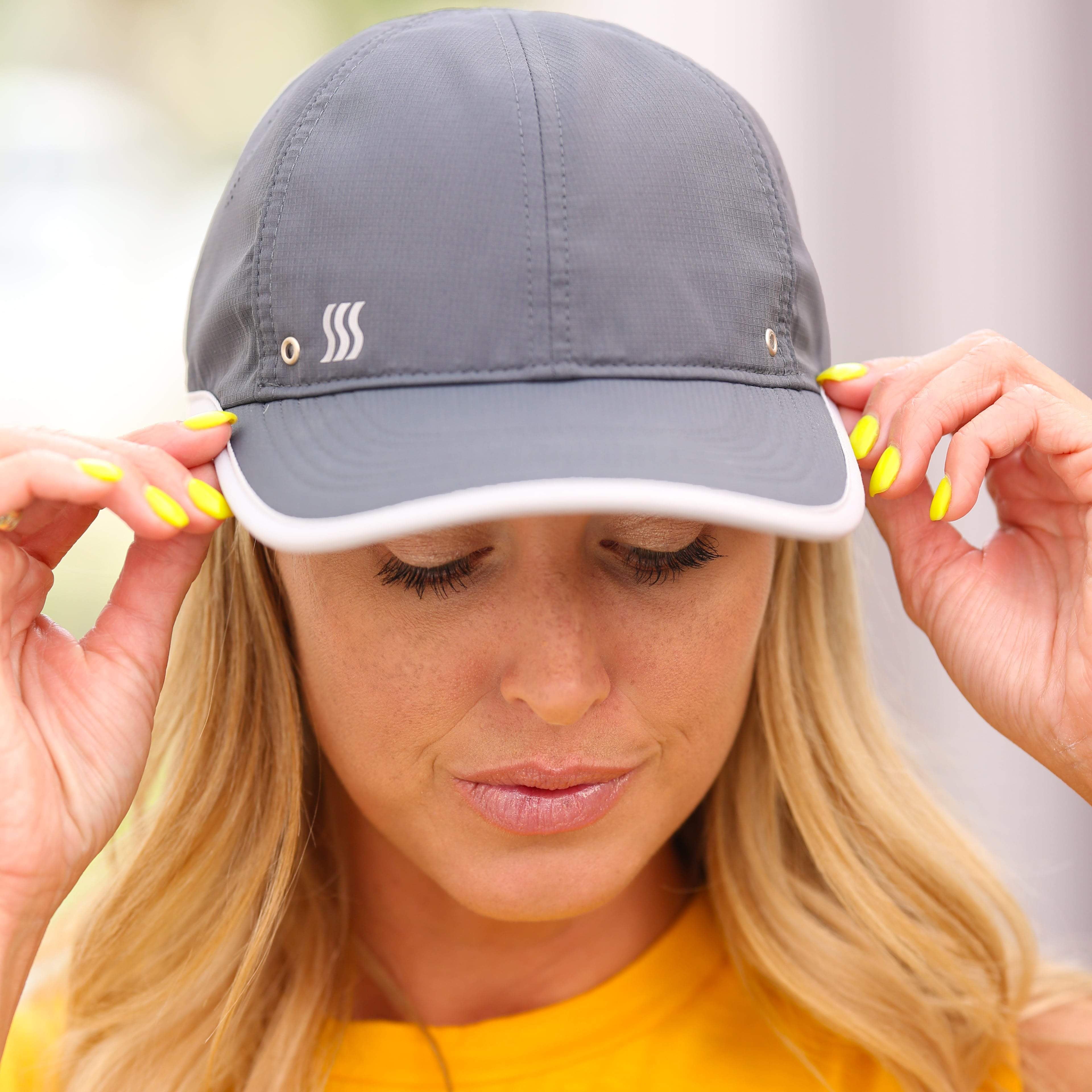 Constructed with premium quality fabrics, this running hat will keep at your top performance while training, running or playing tennis. Our built-in sweatband is a multi-layer, dynamic system that continuously wicks away moisture from your forehead through and to the outer later for quick evaporation to keep your vision clear and sweat off of your face.