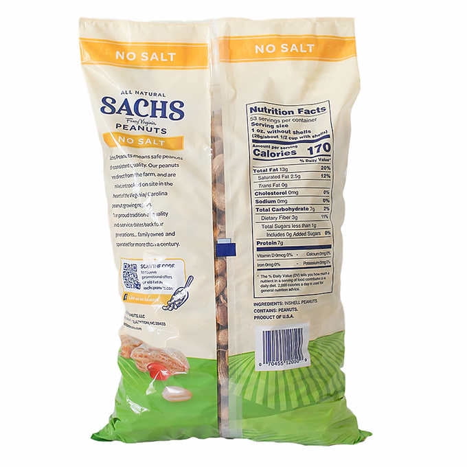 Sachs In-Shell Fancy Virginia Peanuts, Unsalted, 80 oz