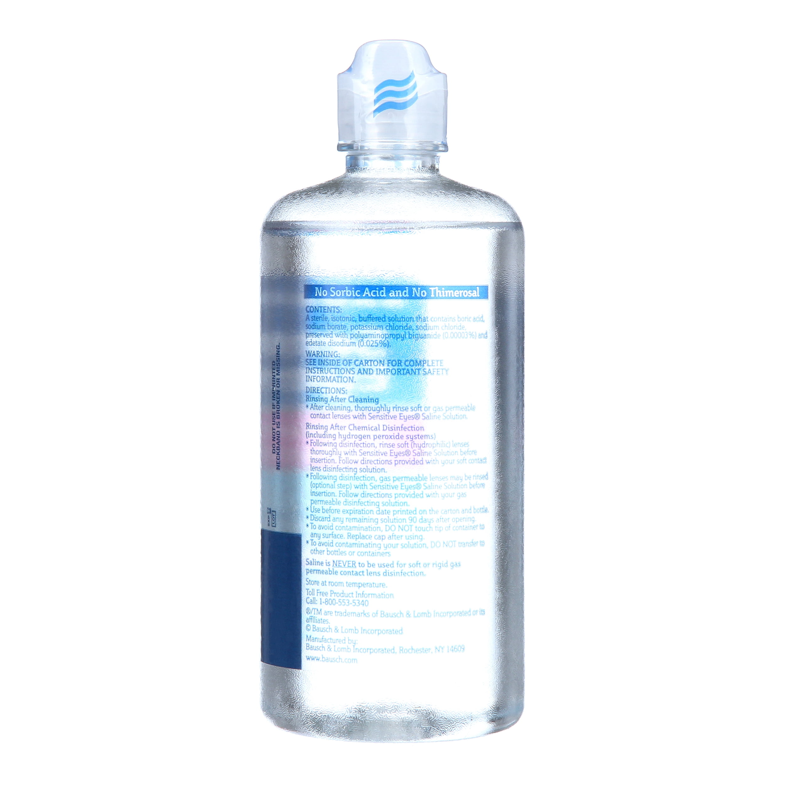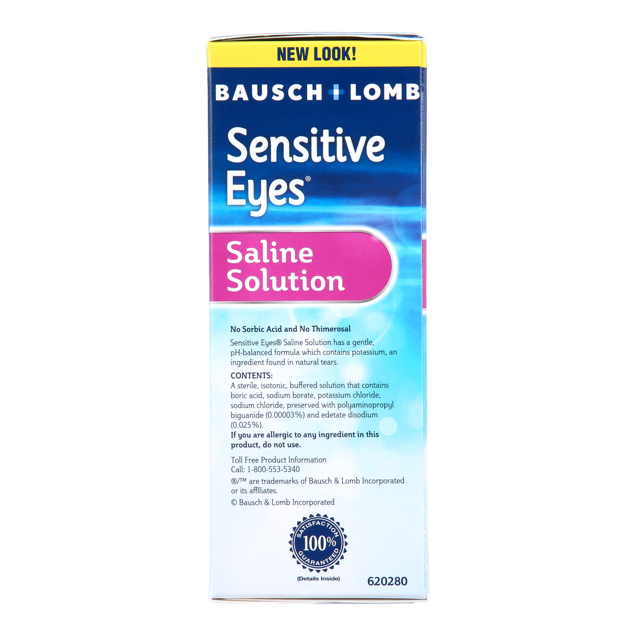 - Sensitive Eyes Plus Saline Solution has a gentle, pH-balanced formula which contains potassium, an ingredient found in natural tears