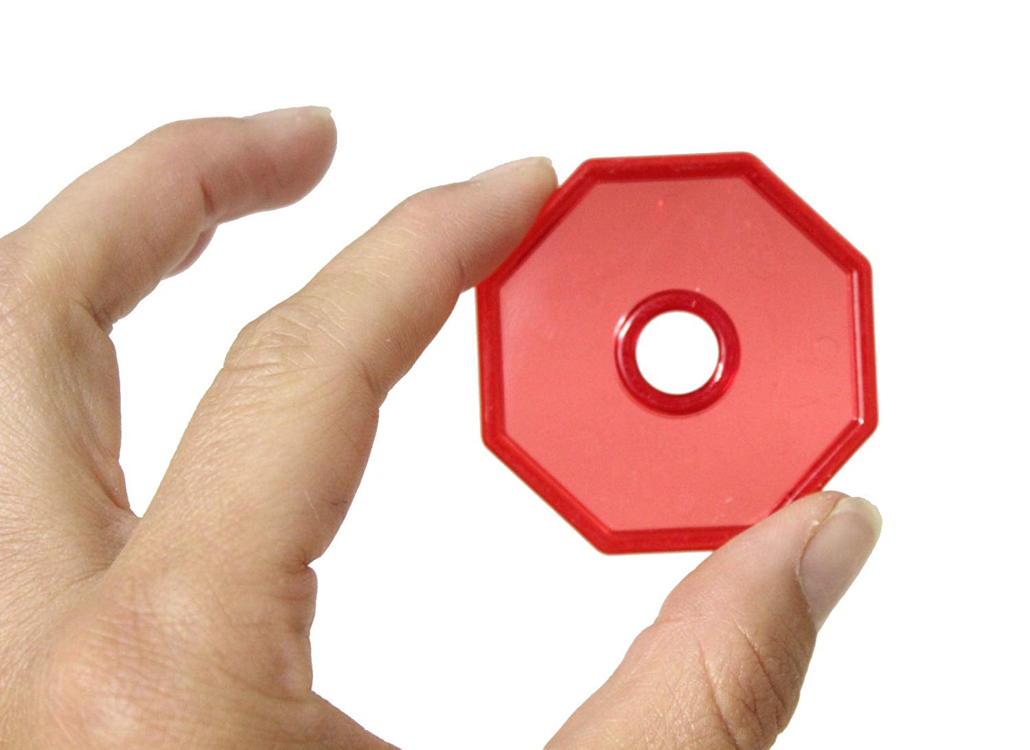 - These are large shapes with a single large lacing hole. The hexagon, flower, and circle are 2", and the square is 1.5".