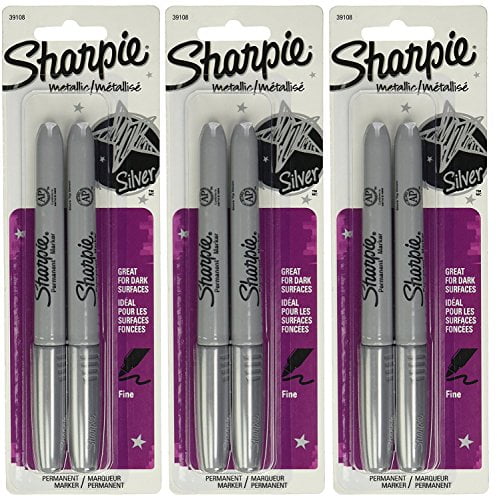 Sharpie 39108PP Fine Point Metallic Silver Permanent Marker, 3 Blister Packs with 2 Markers Each for A Total of 6 Markers