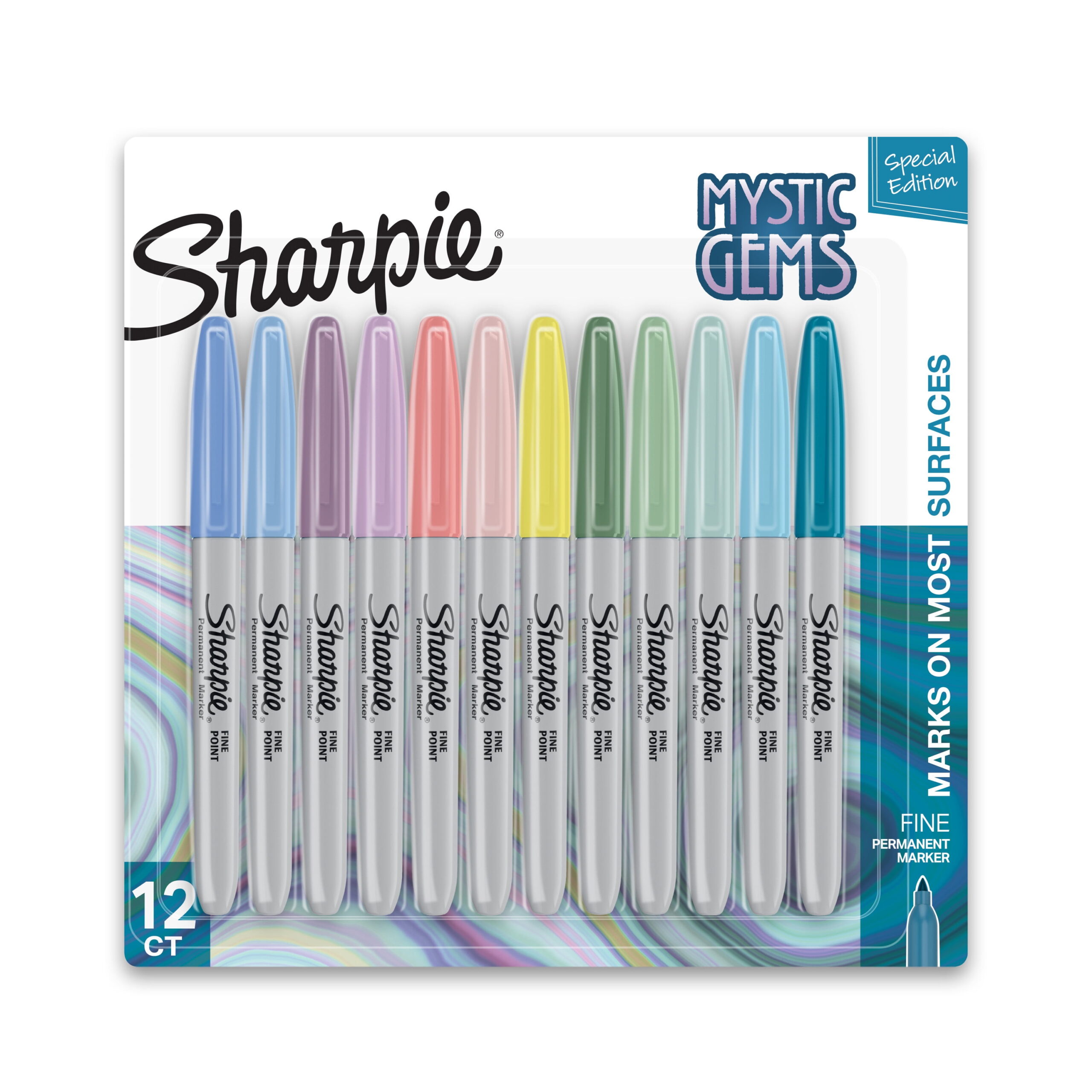 Made to mark practically anywhere, Sharpie Permanent Markers inspire you to transform ordinary surfaces into passionately creative statements. With special-edition Mystic Gem colors, these Sharpie Markers combine soft pastels with darker, natural colors to produce vibrant marks inspired by the dynamic energy of gemstones. The original permanent marker, Sharpie features iconic ink that dries quickly and resists both water and fading. Finally, depend on these fine-point markers to leave bold marks that impress.