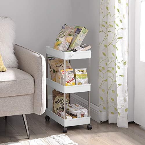 The items you used yesterday are no longer visible today? Don’t worry, this SONGMICS trolley helps you to solve the headache of things that always disappear! You’ll Find Everything Here: With 3 quality PP shelves supported by strong metal tubes, this mobile shelf on wheels can hold anything you haven’t found a proper place for. The compact size of 15.7” x 8.7” x 23.6” makes it perfect in the bathroom for body care products, in the kitchen for snack packs, or in the office for documents. This space-saving trolley will soon become your organization beacon. If you’re looking for a way to easily access your daily needs, this SONGMICS cart is here for you!