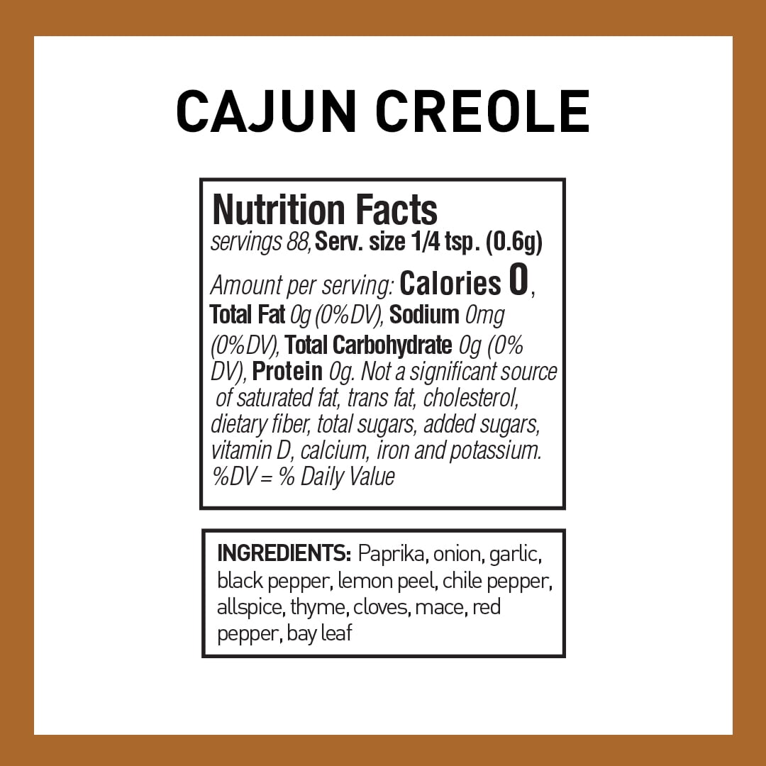 - Our Cajun Creole Seasoning is a robust, smoky blend of red and black peppers, savory onion, pungent garlic, smoky paprika, bright and citrusy lemon peel, warm spices and more.