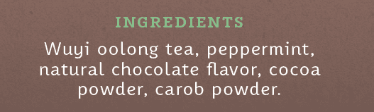 - An irresistible blend of Wuyi oolong, peppermint, and rich chocolate