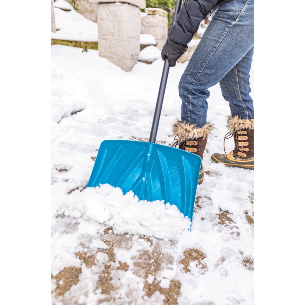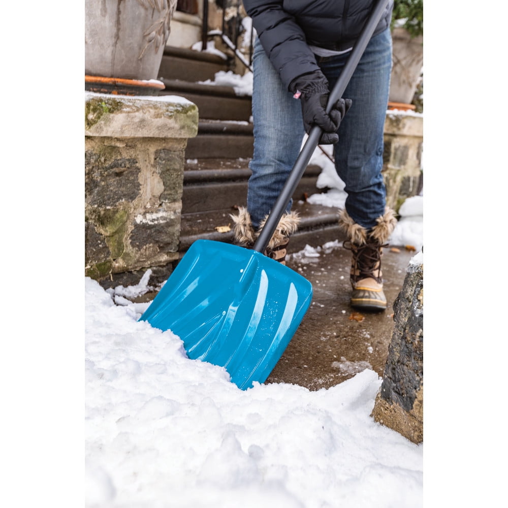 Ensure your home is prepared for rough winter weather with the Suncast® 18” Snow Shovel. This snow shovel has a Comfort D-grip handle for added grip, strength, and control. The Suncast 18" Snow Shovel features a Ribbed Steel Core® shaft with a resin covering which combines strength and durability that is built to last. The flat resin blade profile makes lifting snow easier and the angled rib pattern resists snow-stick to get your shoveling job done faster.