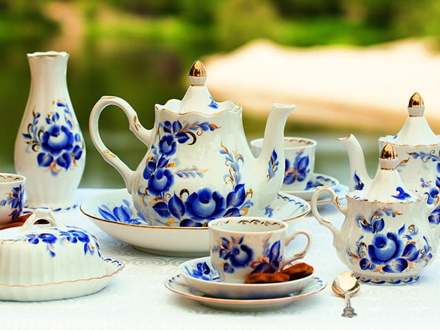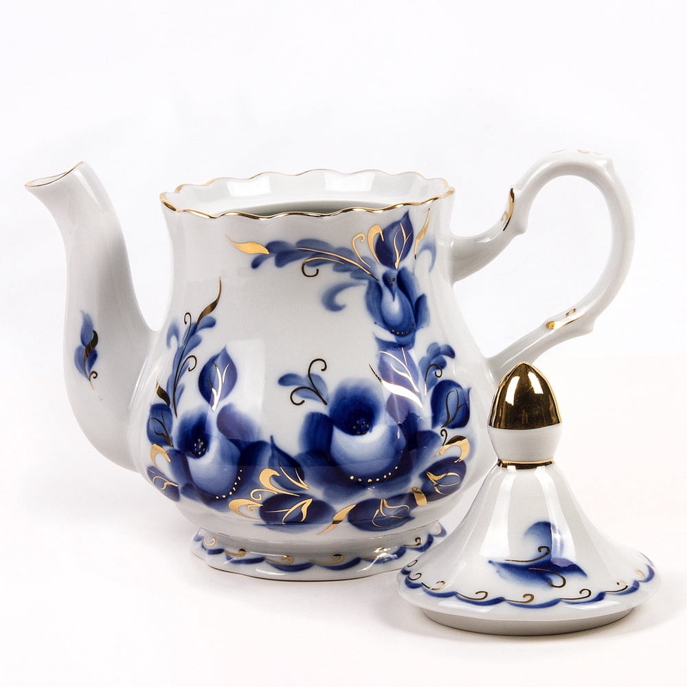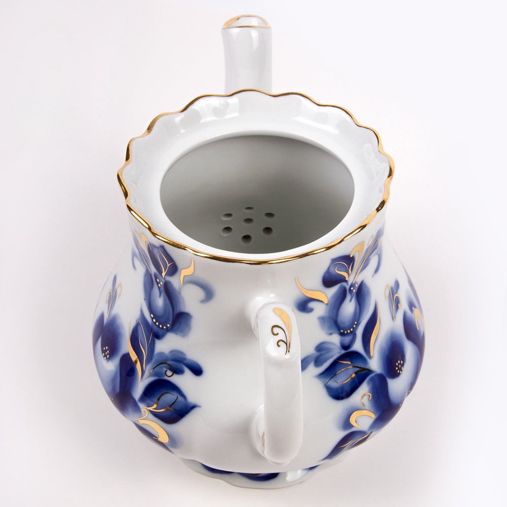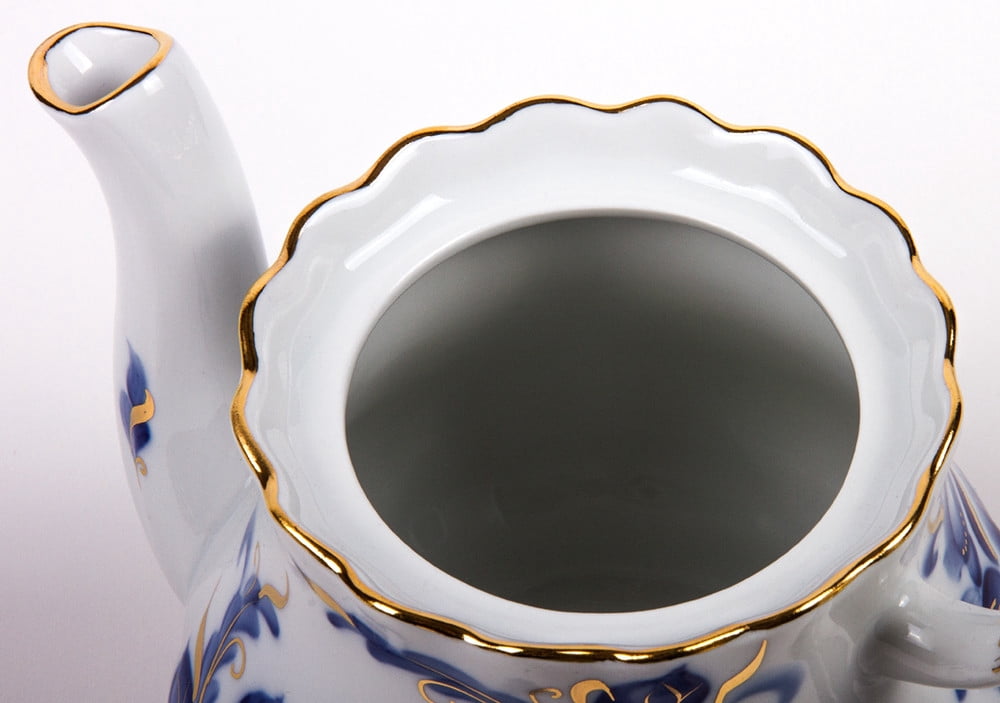An elegant brewing teapot "Tatiana" made out of thin white porcelain, decorated with a gorgeous design depicting blue flowers with the inclusion of some golden ornaments. The combination of colors makes this teapot look extremely royal! The produce hand-made by the artisans working at the factory, is very popular in Europe. When purchasing the Dobrush porcelain pieces it is important to keep in mind that one should take great care of such tableware. The produce of the Dobrush Porcelain Factory stands out due to the following: – The eco-friendly and safe materials used by the artisans; – Harmonious accordance between the price and quality; – Alluring design and diversity of produce; – Constantly updated assortment;