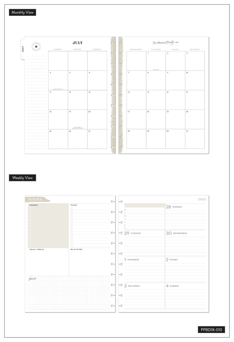- This 18-month planner runs from July 2021-December 2022. It includes 18 dividers with leopard prints, inspirational quotes and metallic foil accents. This 18-month goal setting planner comes with sturdy laminated covers and plastic discs. Decorate your monthly calendars and weekly agenda spreads with decorative and functional stickers. Use the Happy Planner disc bound system to add accessories to personalize your planner. Easily insert and remove pages