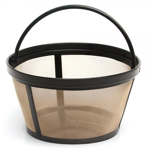 Gold Tone Reusable Basket-style 10-12 Cup Coffee Filter with Solid Bottom.Fits Black & Decker, Bunn, Continental, Hamilton Beach, Kitchenaid, Mr. Coffee and Proctor Silex coffeemakers.