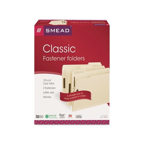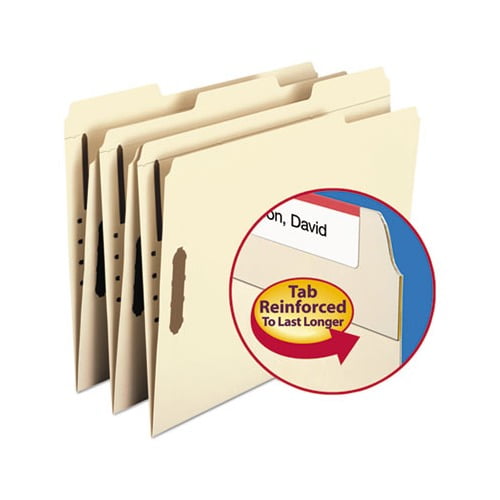 Hold papers securely and keep them in order with fasteners. Fasteners provide separate filing surfaces. Reinforced tabs for extra durability. 11 pt. Manila. File Folder Size Type: Letter File Folder Color: Manila Color Family: Manila File Folder Material: 11-pt Manila. Green : Paper contains 10% post-consumer recycled content, 10% total recycled content.